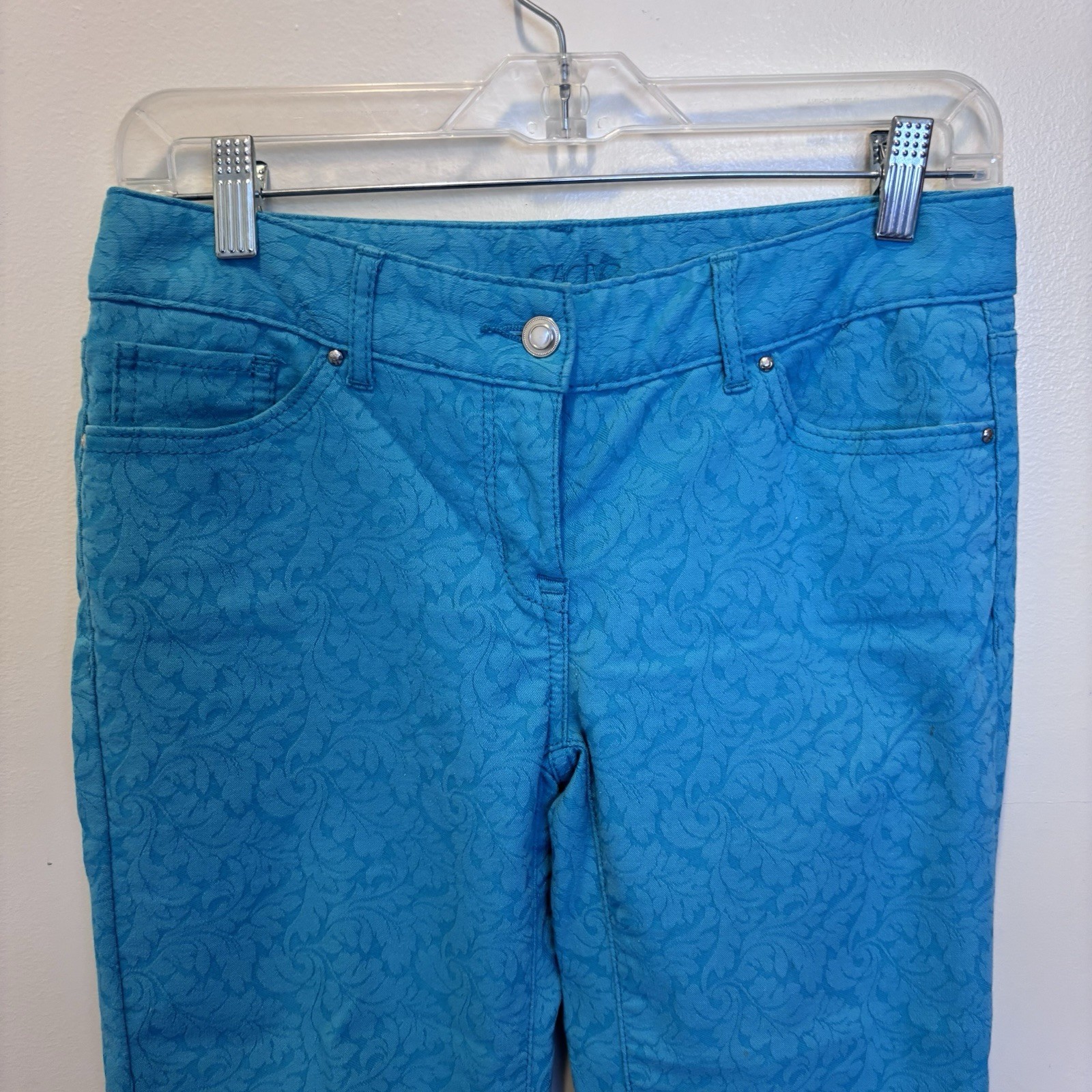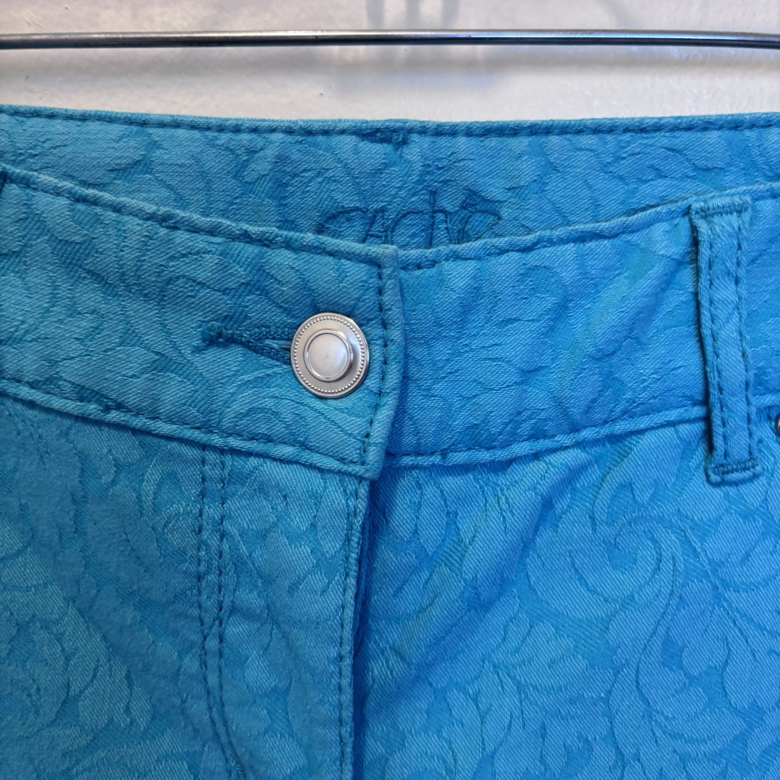 как выглядит Cache Turquoise Flower Embroidered Straight Pants - Womens Size 2 Vintage фото