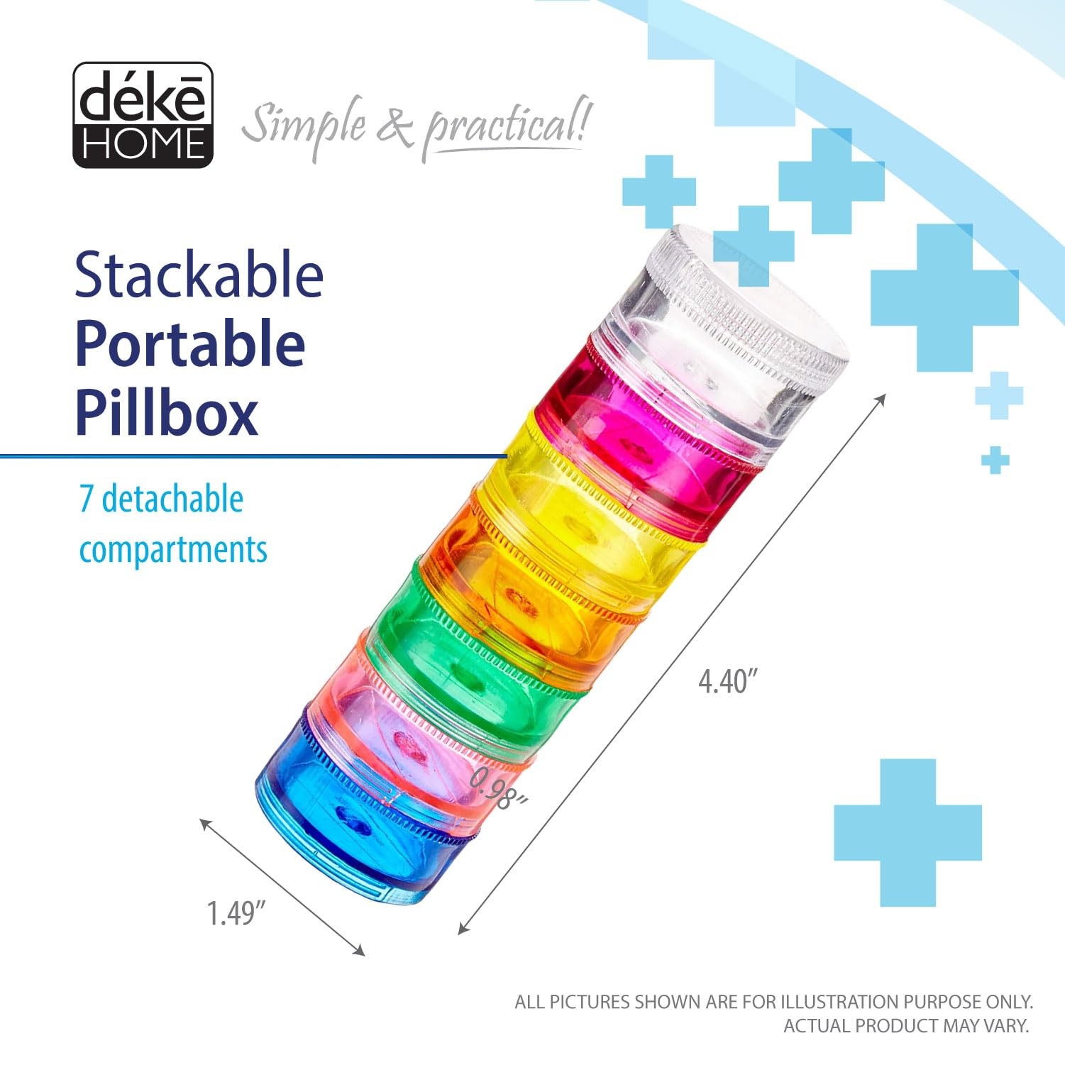 Included Components: 2 Pack Rainbow 7 Day Stackable Pill Organizer Case