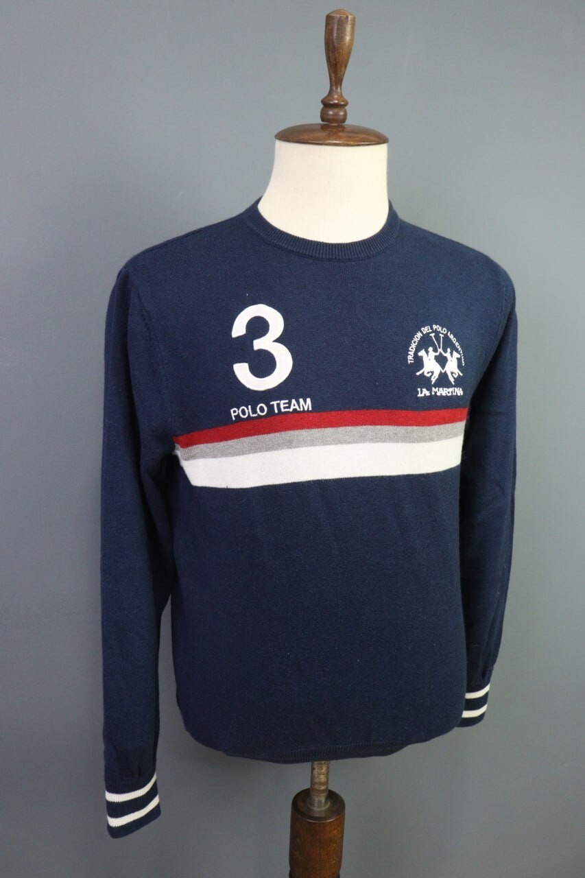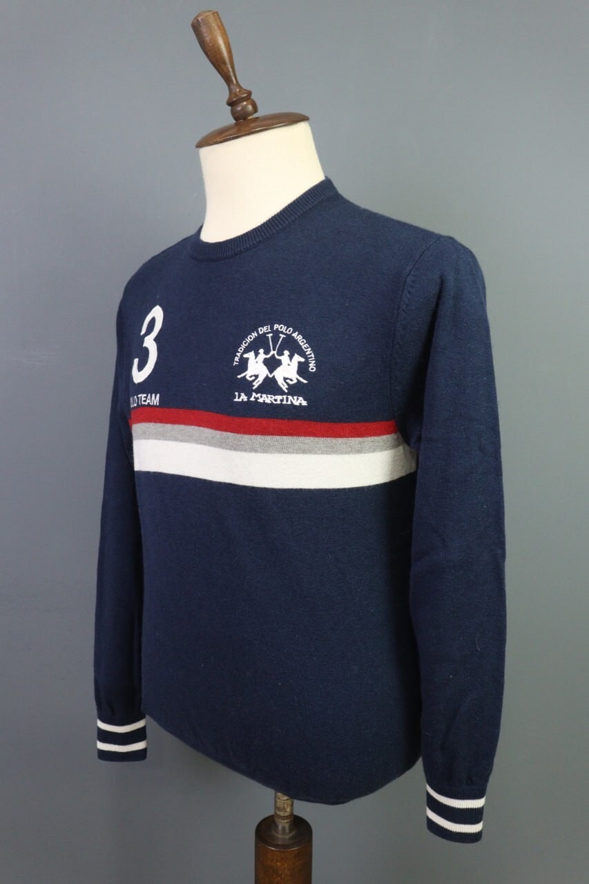 как выглядит La Martina Buenos Aires Blue Wool Knit Crew Neck Sweater Size L фото