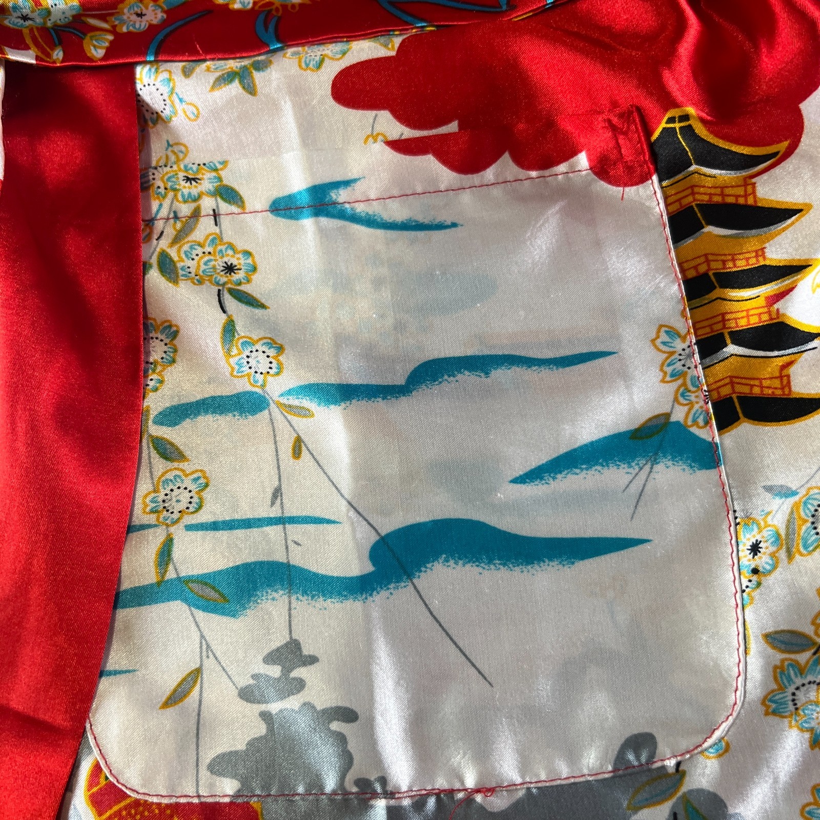• Vintage Japanese Kimono Robes Womens White Red Satin Ukiyo-e Print Loungewear