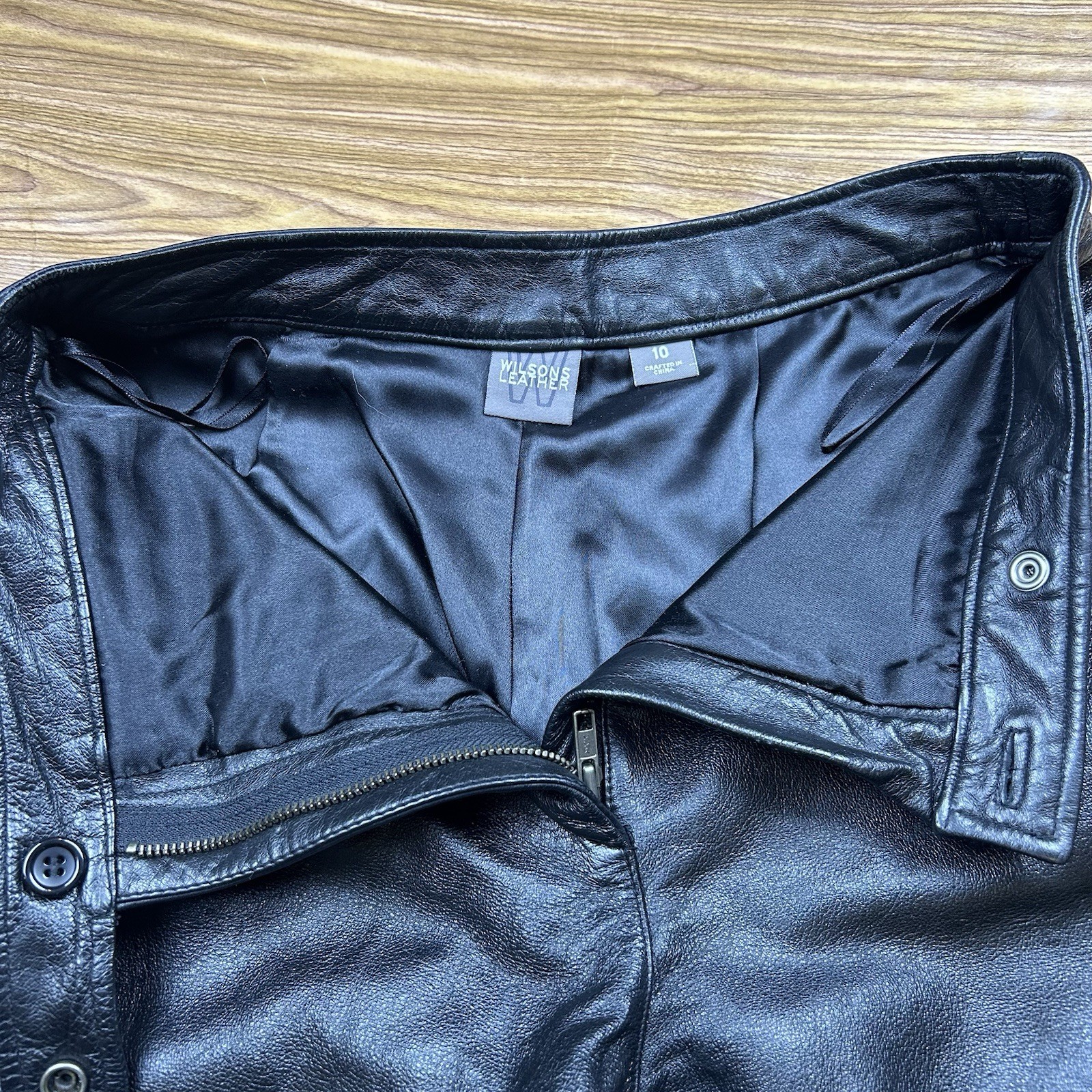 как выглядит Wilsons Black Leather Pants Lined High-Rise Heavyweight Moto Biker Size 10 фото