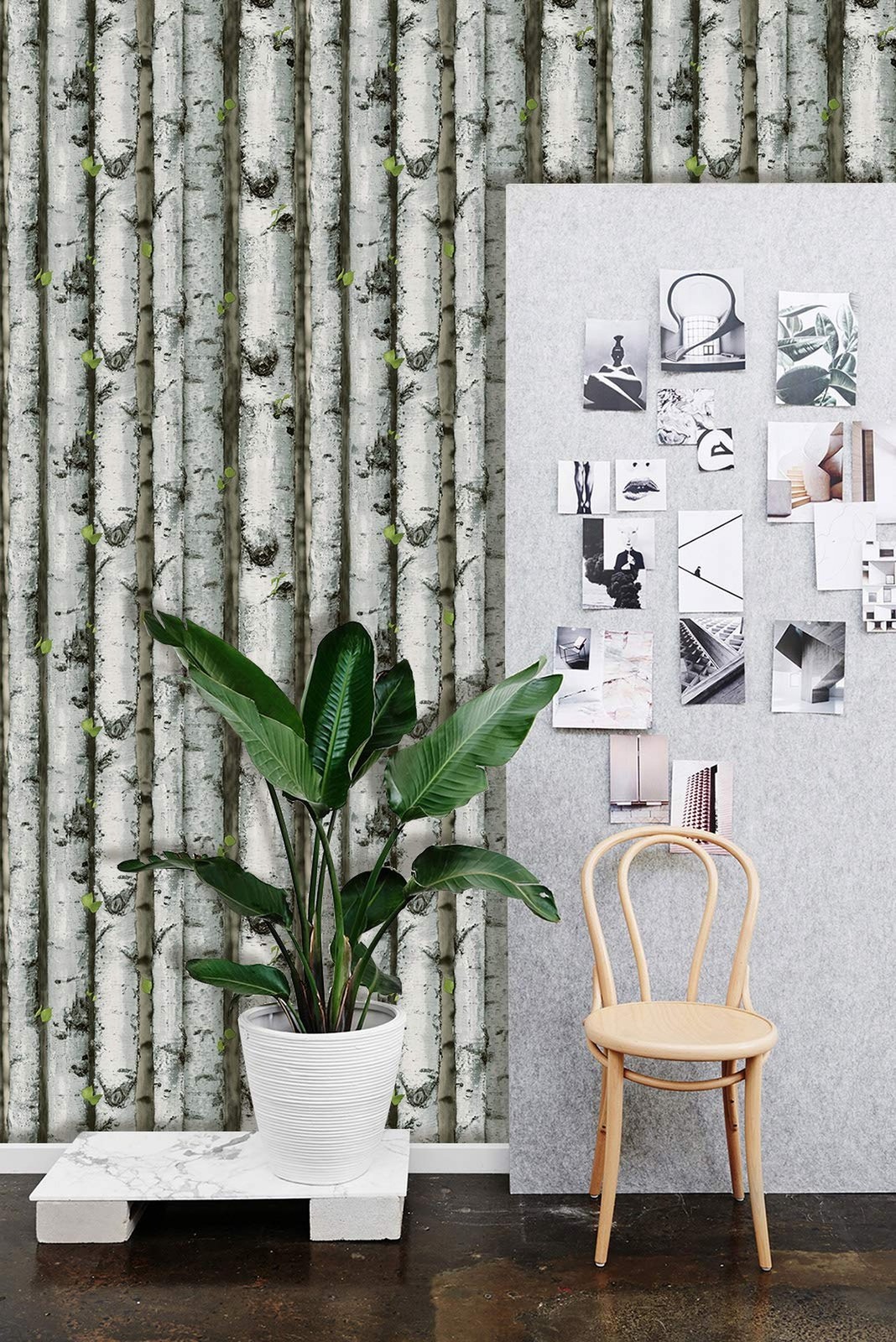 как выглядит HAOKHOME Forest Wallpaper Peel and Stick Wood Birch Tree Removable Grey/Brown... фото