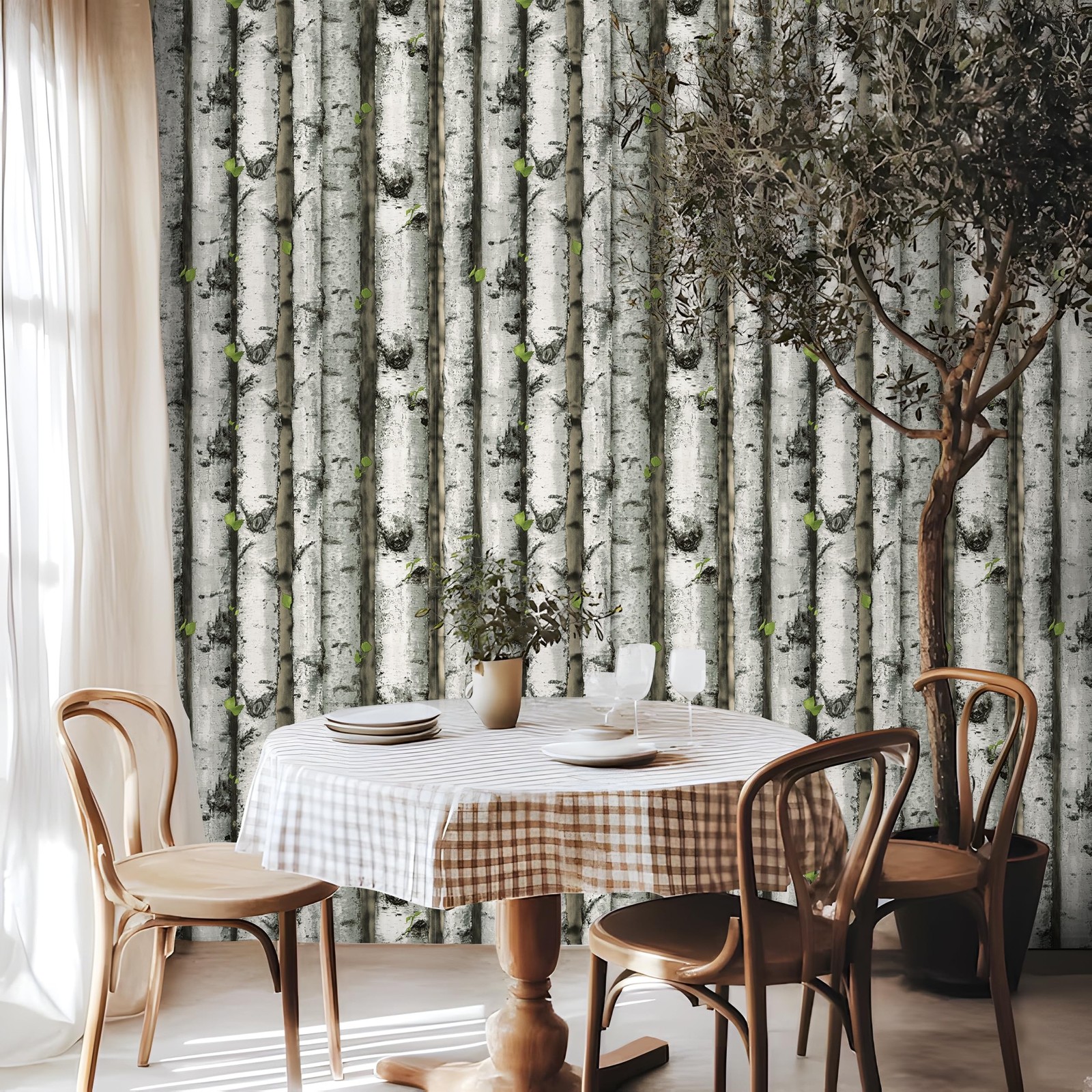 HAOKHOME Forest Wallpaper Peel and Stick Wood Birch Tree Removable Grey/Brown...