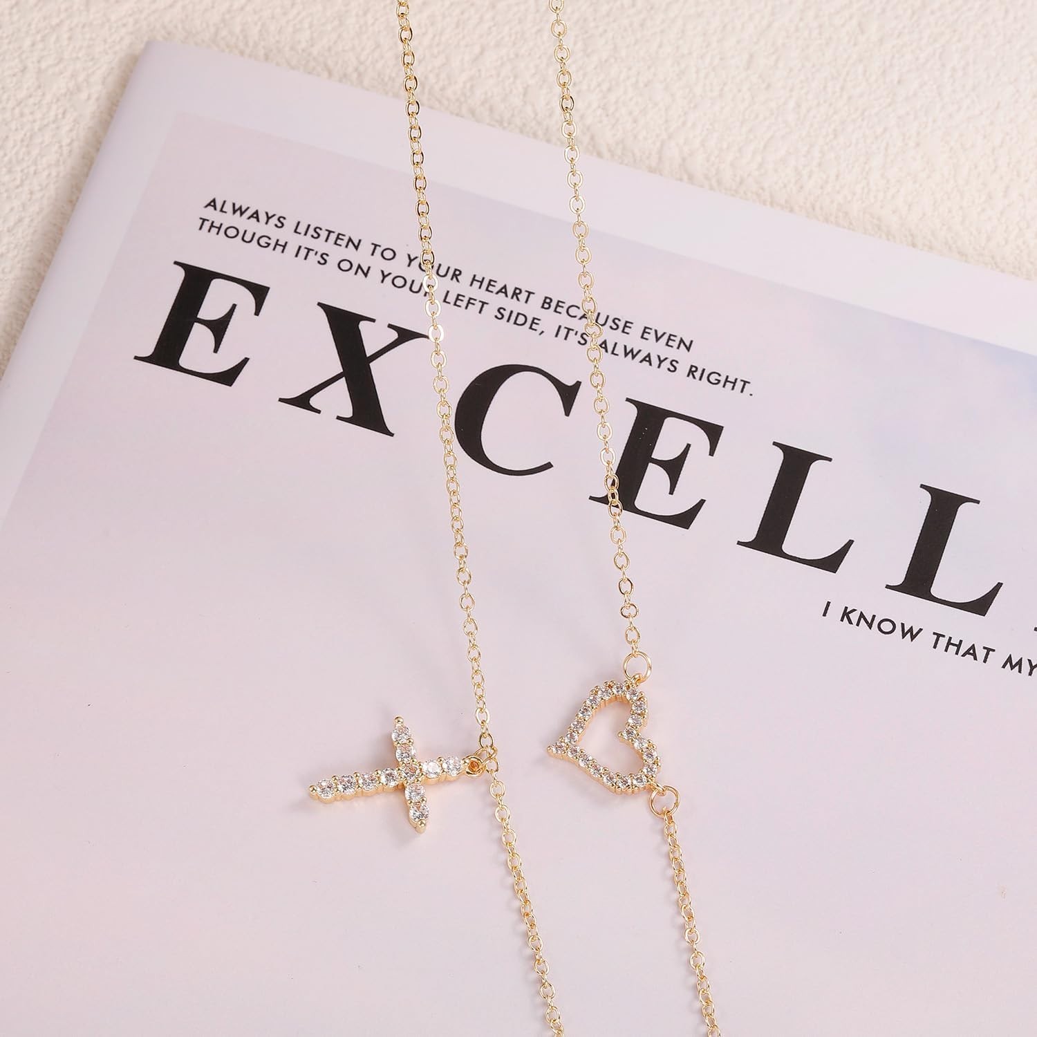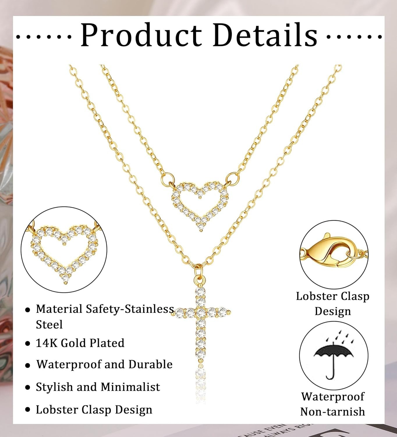 как выглядит 14K Gold Plated Layered Necklace for Women, Pearl Cross Cubic Zirconia Heart ... фото