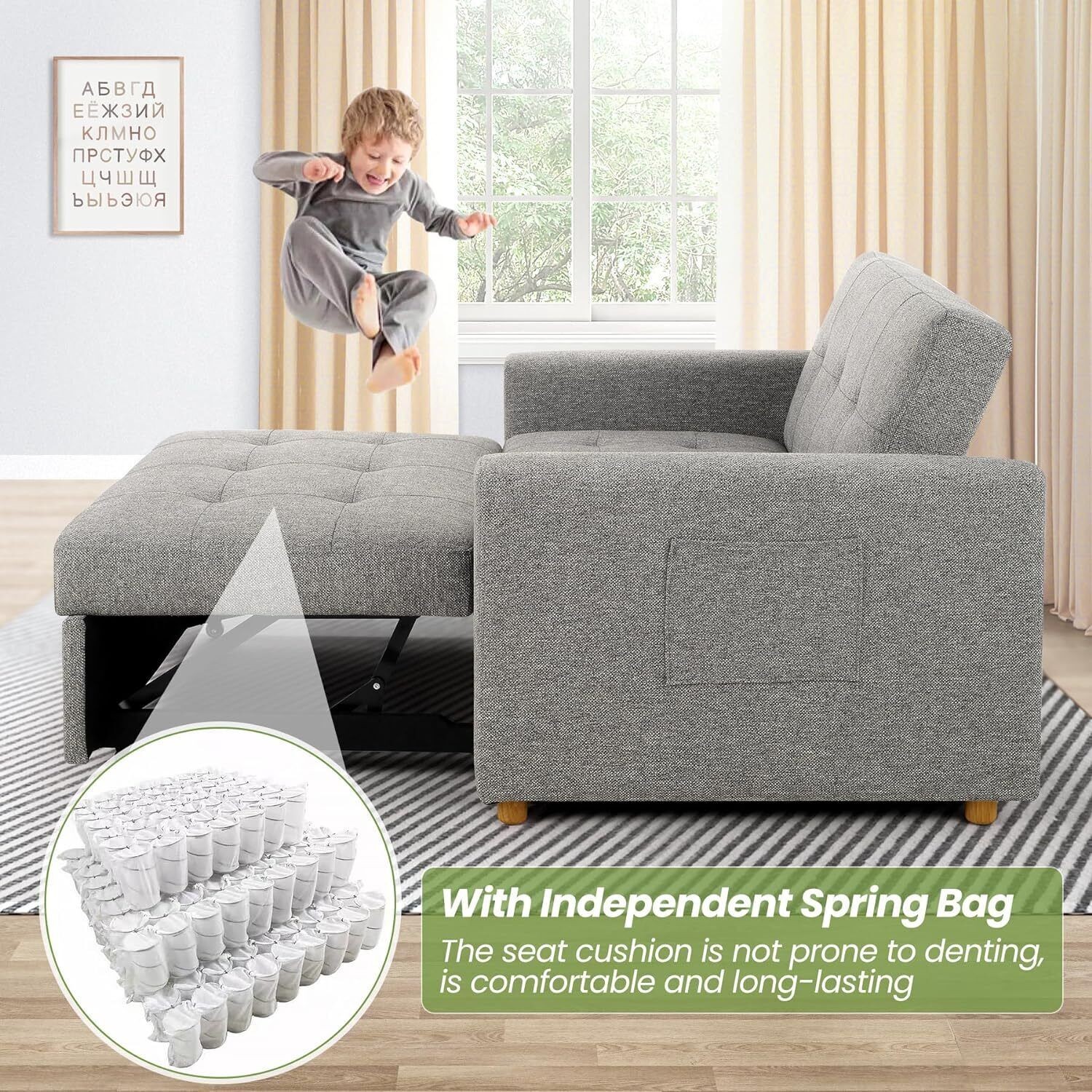 Convertible Sofa Bed, Linen Fabric Sleeper Couch Pull Out Bed 3-in-1 Loveseat