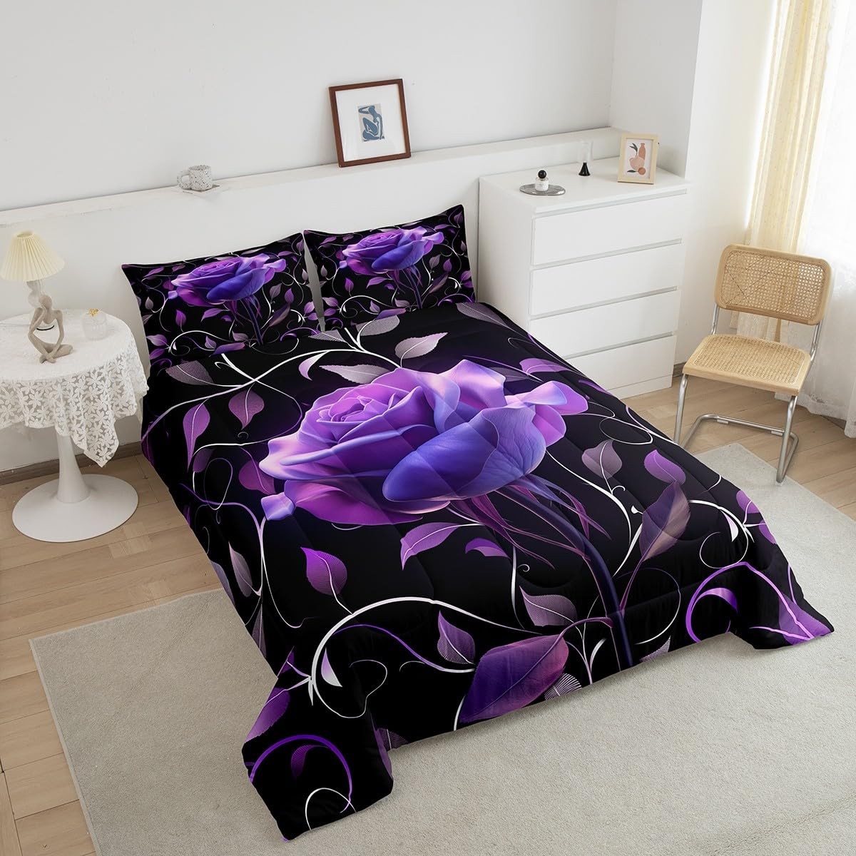 как выглядит Rose Comforter Twin Size Rose Floral Flower Comforter Set Girls Children Gard... фото