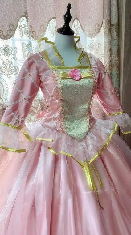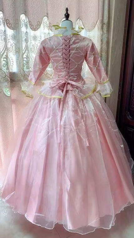 как выглядит Pink Princess Sweetheart Long Sleeve Wedding Dress Gold Lace Appliques A-Line фото