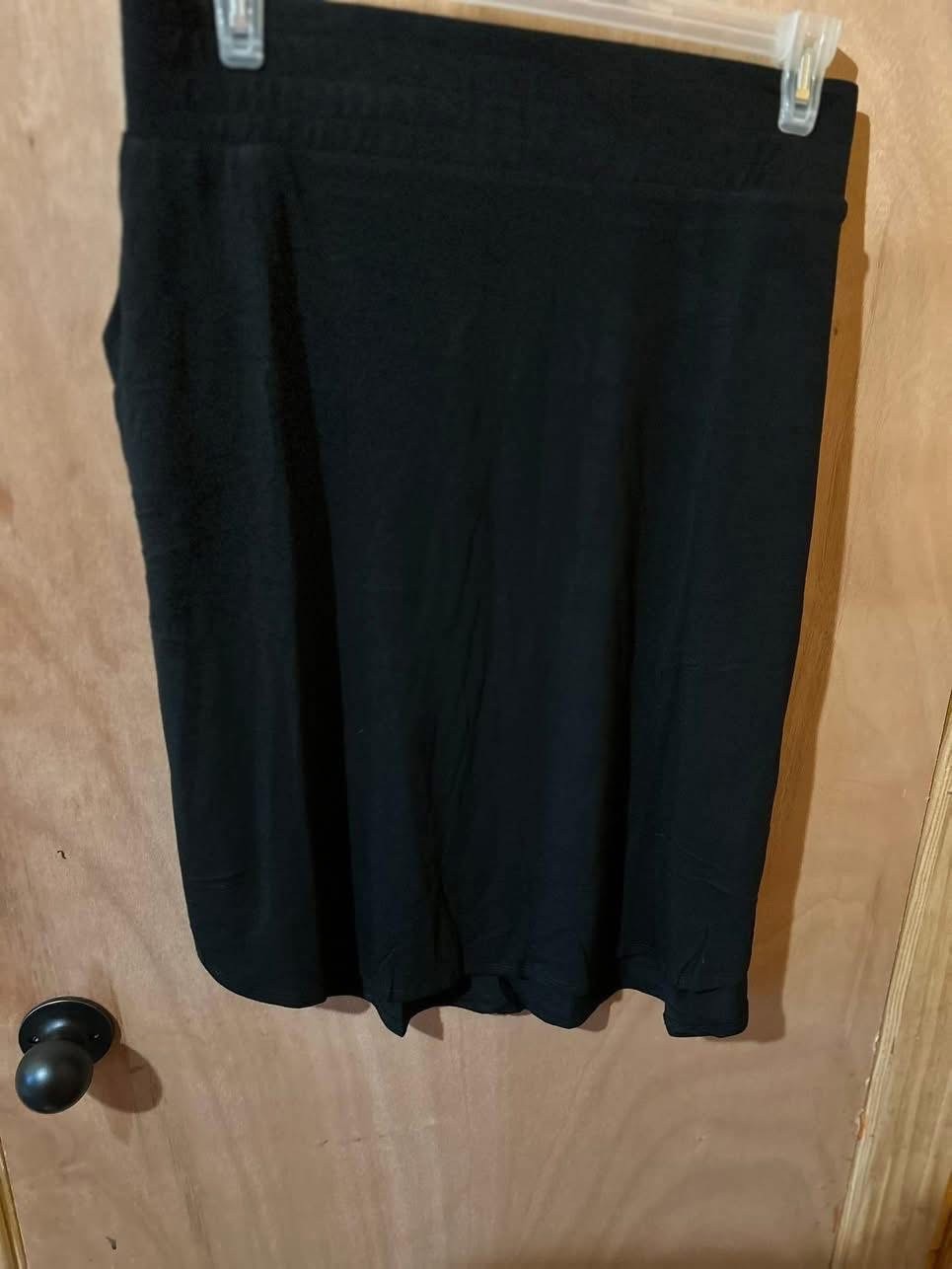 как выглядит Black Knee Length A-Line Skirt Women Solid Pull On Regular Casual Office Style фото