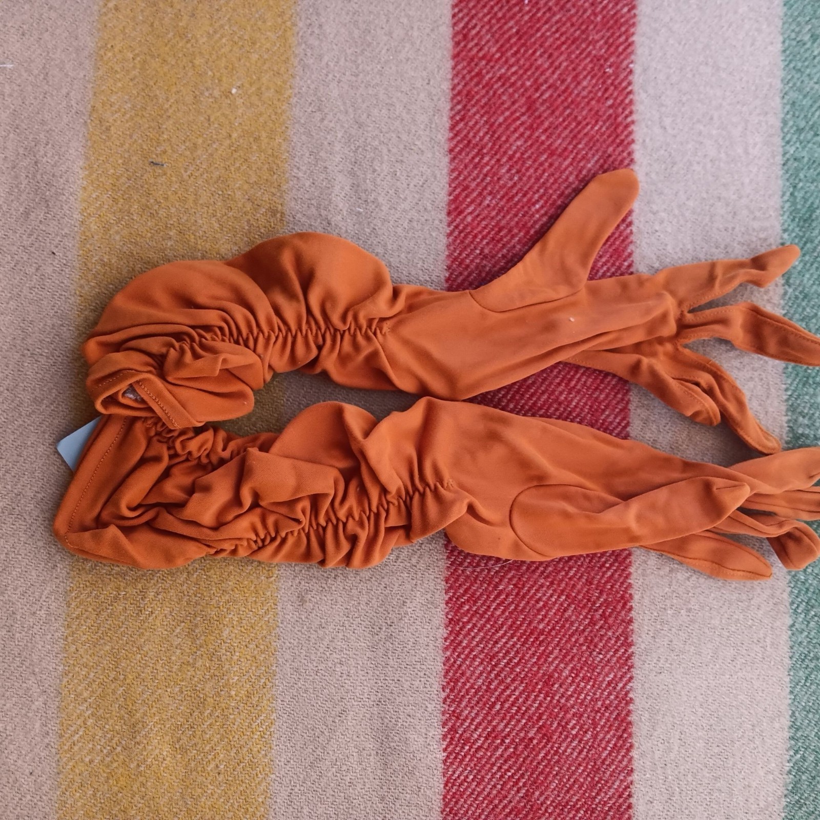 как выглядит Van Raalte NOS Vintage 1960s Orange Ruched Gloves OS Nylon Womens NEW NWT фото