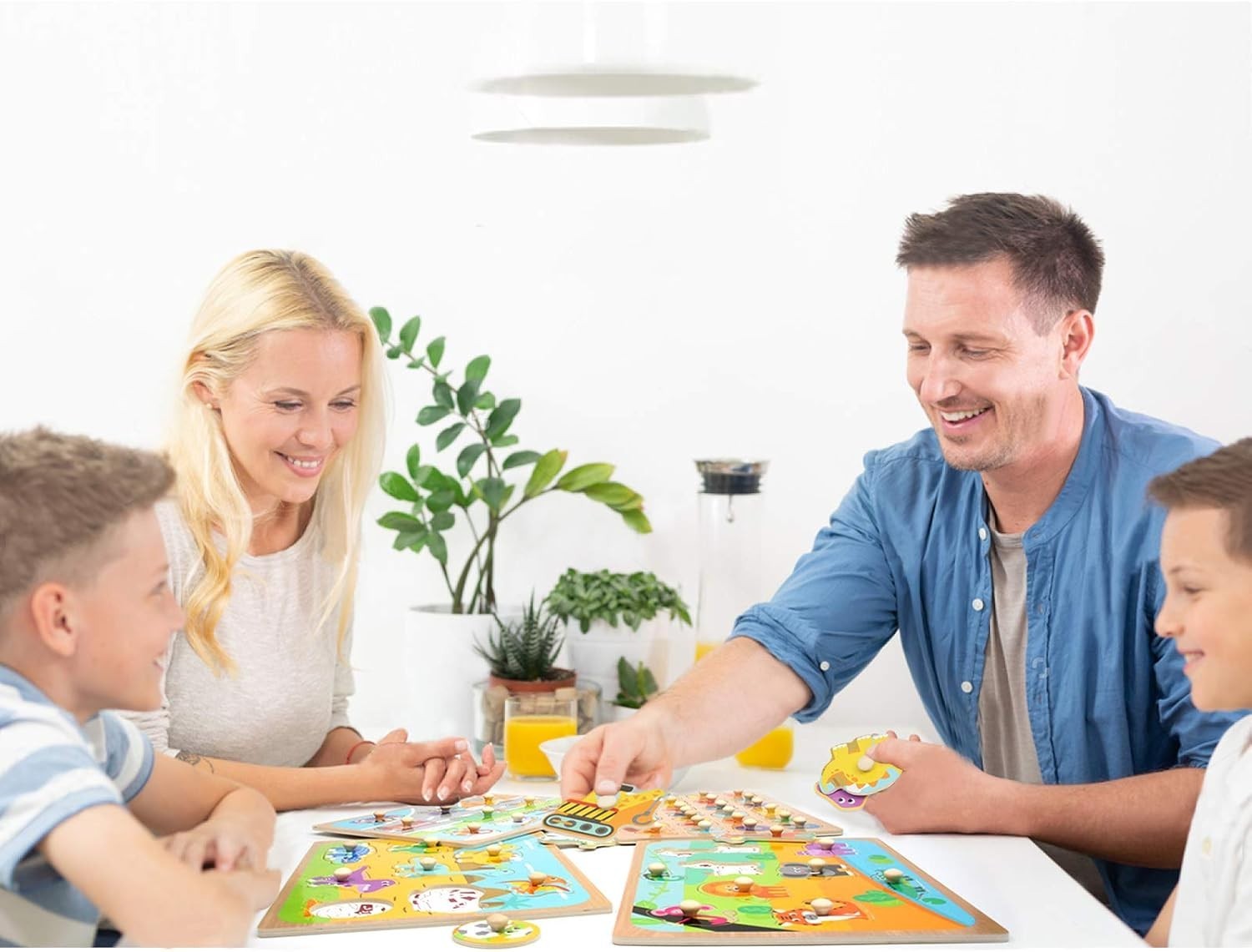 Toddler Wooden Peg Puzzles Set with Rack - 6 Educational Themes for Ages 2-4