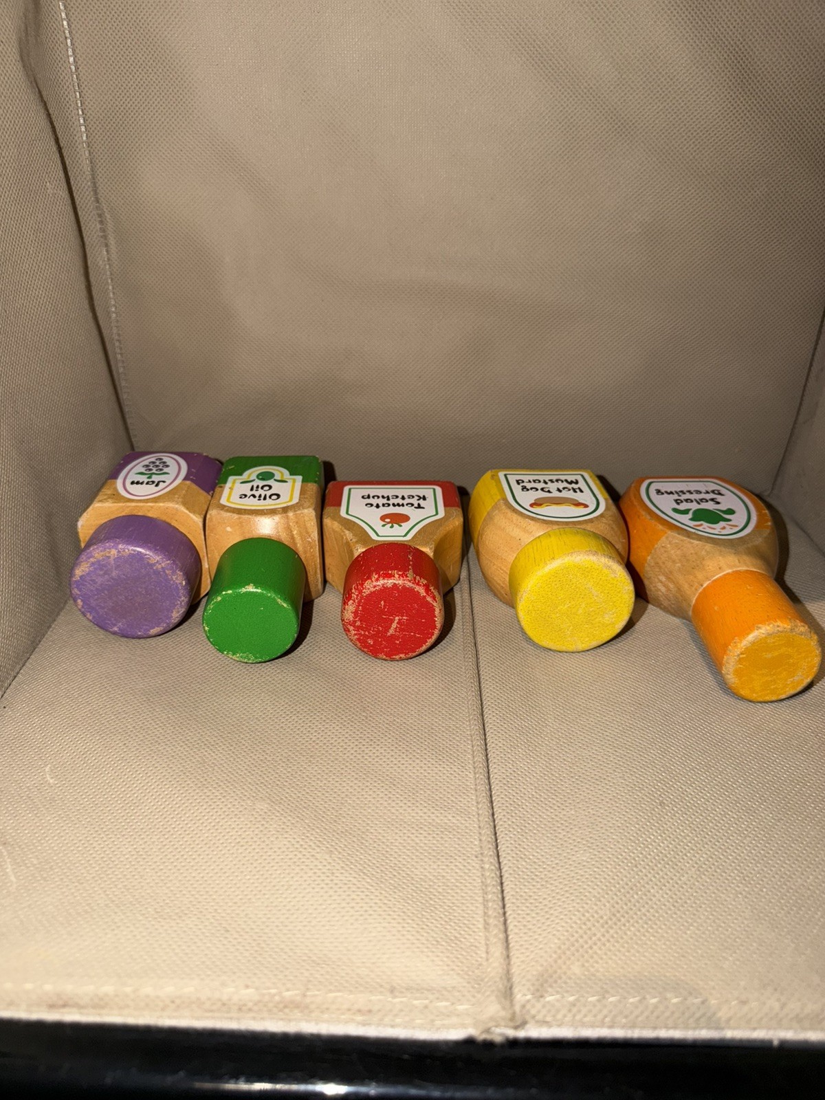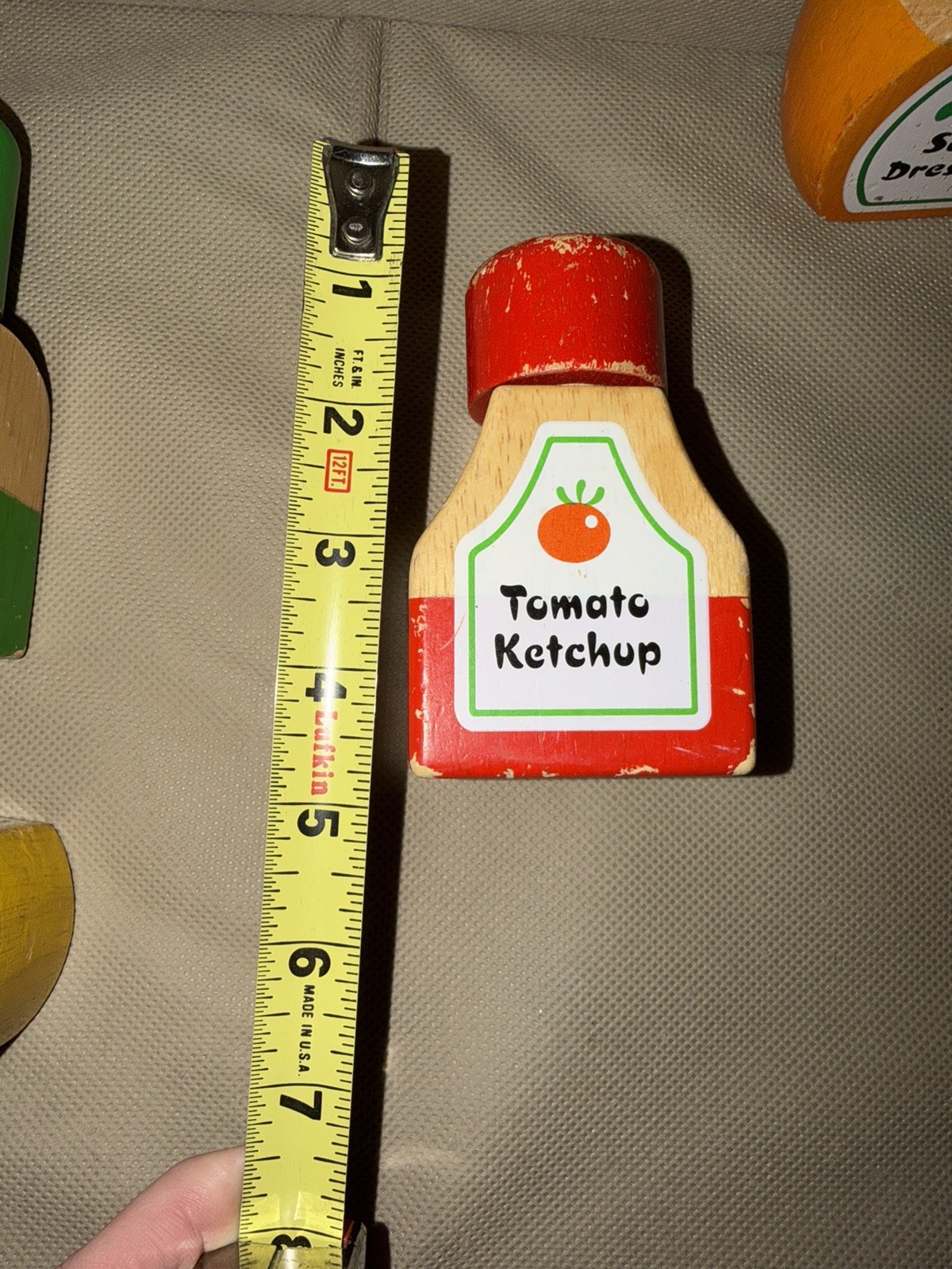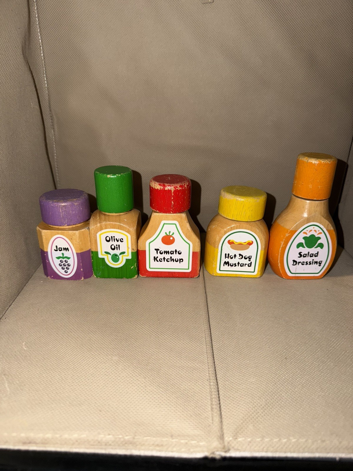 Melissa Doug Condiment Dressing Oil Mustard Jam Ketchup Play Food Wood Magnets