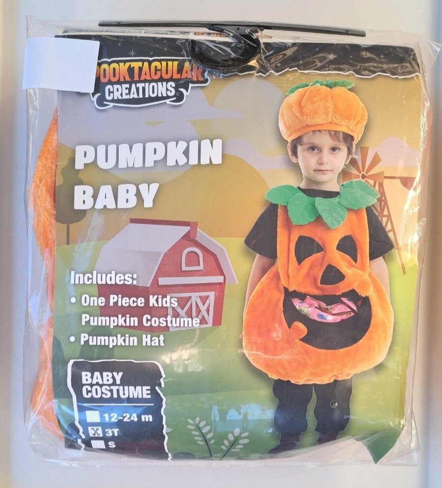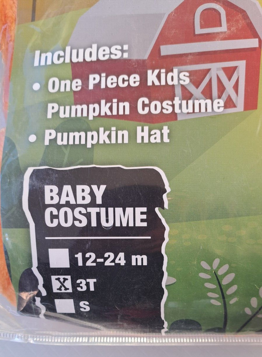 Toddler Pumpkin Halloween Costume 3T Feed Me Mouth Big Pocket NWT