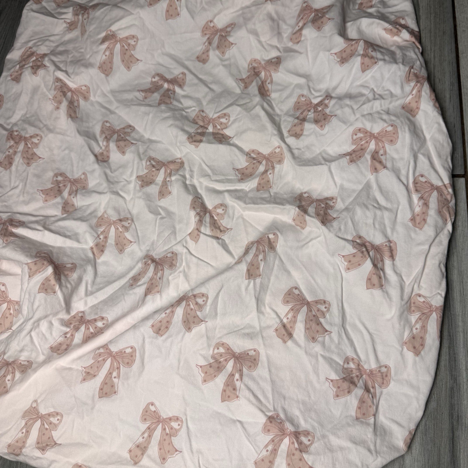 как выглядит Girls The Peanutshell Pink Bow Print Fitted Crib Sheet фото