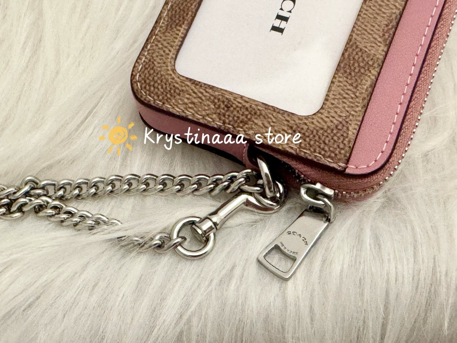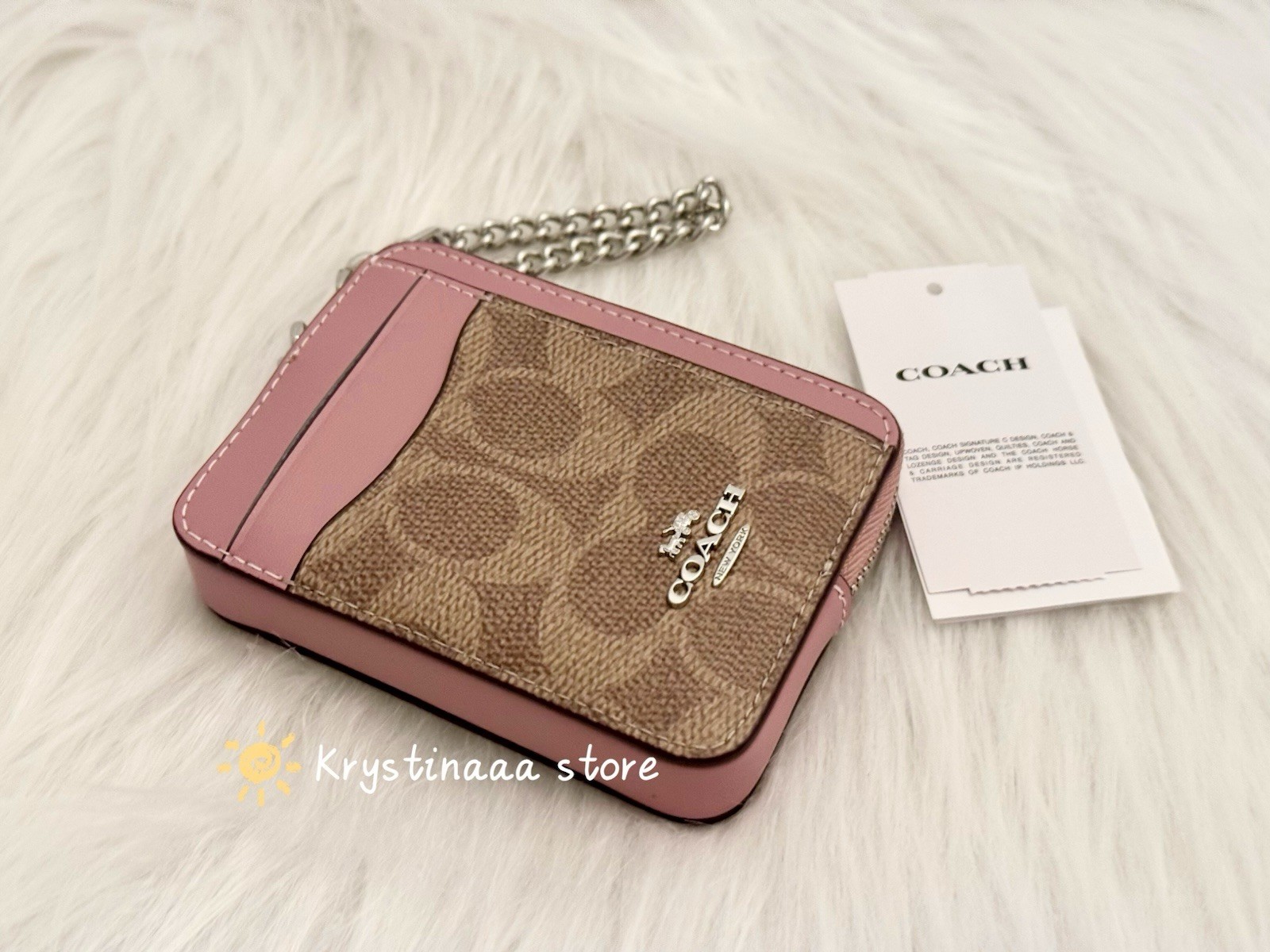 как выглядит Coach Zip Card Case In Signature Canvas CW883 Tan/Dusty Pink фото
