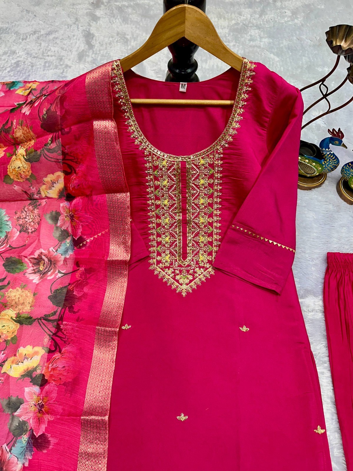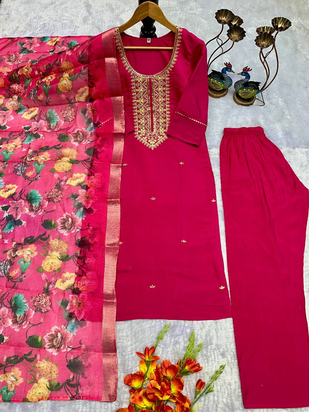 Ethnic Wear Roman Silk Salwar Kameez With Jacquard Organza Dupatta For Women