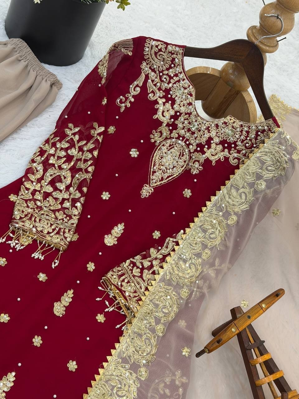 как выглядит New Maroon Heavy Faux Georgette Top Palazzo With Dupatta For Women Girls фото