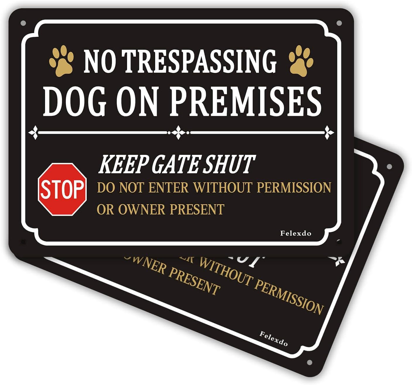 No Trespassing Dog on Premises Sign,2-Pack 10 X7 Keep Gate Shut Beware of Dog S
