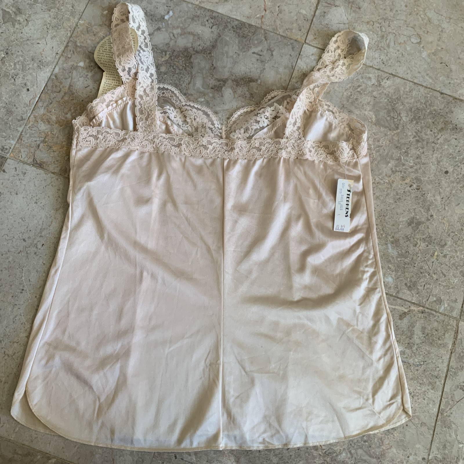 Vintage Olga Camisole Womens Large Secret Hug Cami Top Beige Lace Trim NWT