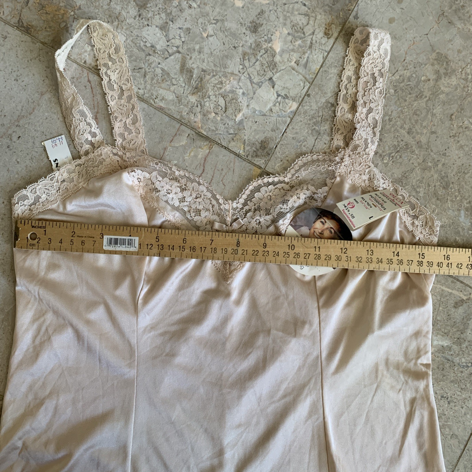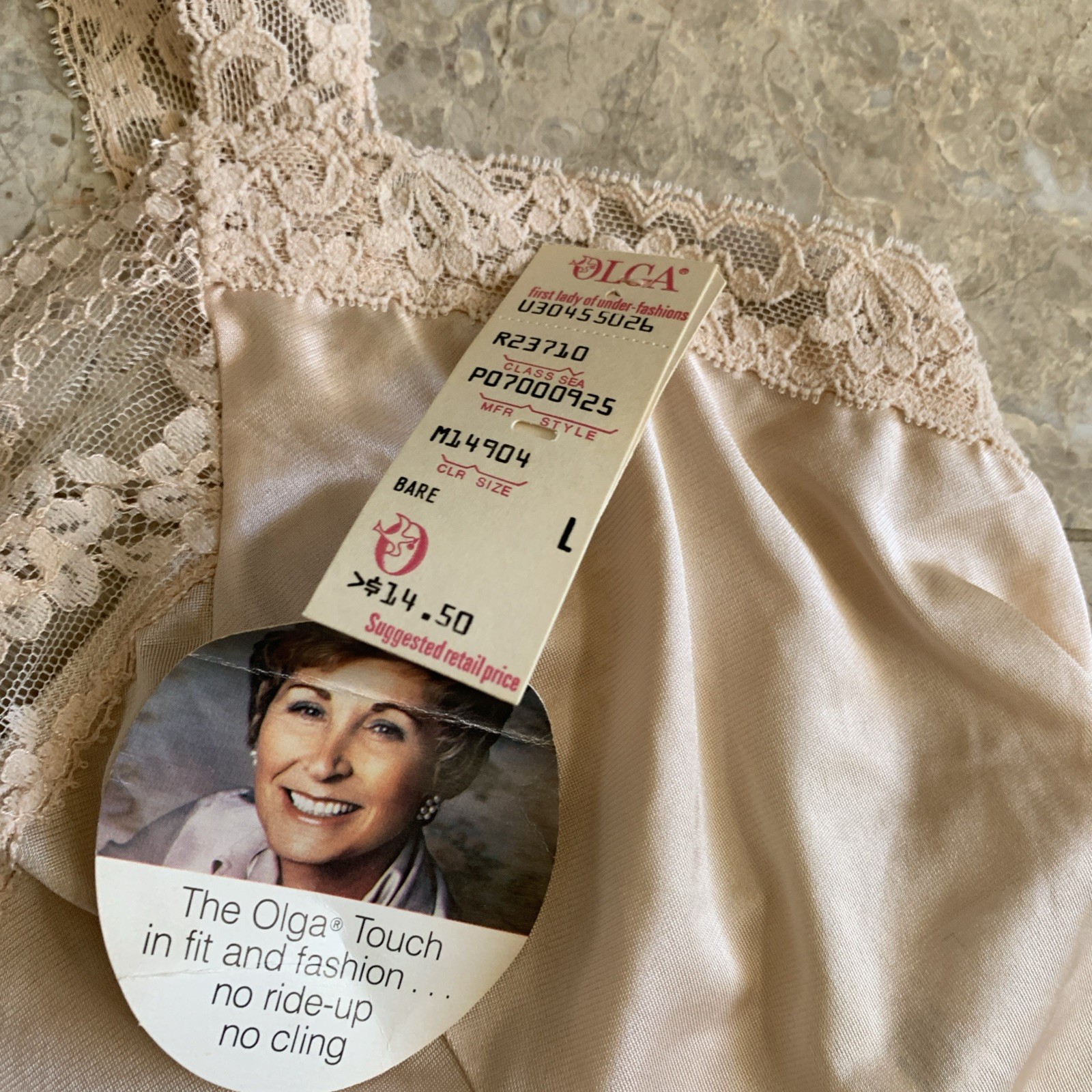 как выглядит Vintage Olga Camisole Womens Large Secret Hug Cami Top Beige Lace Trim NWT фото