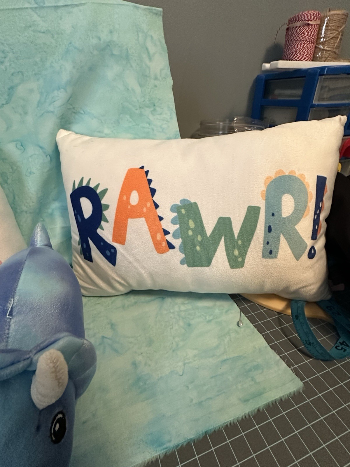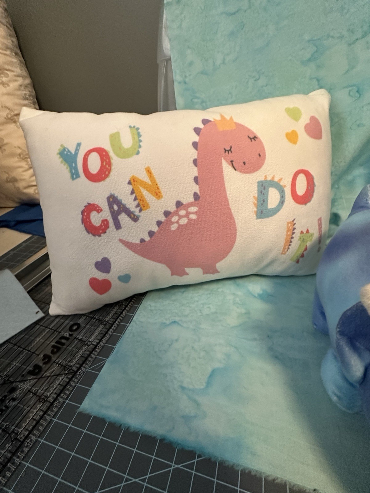 как выглядит 3 Crib Pillows And Dino stuffed toy фото