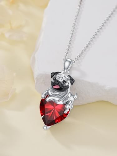Pug Heart Birthstone Necklace 925 Sterling Silver Pug Dog Pendant 01-Jan-Garnet