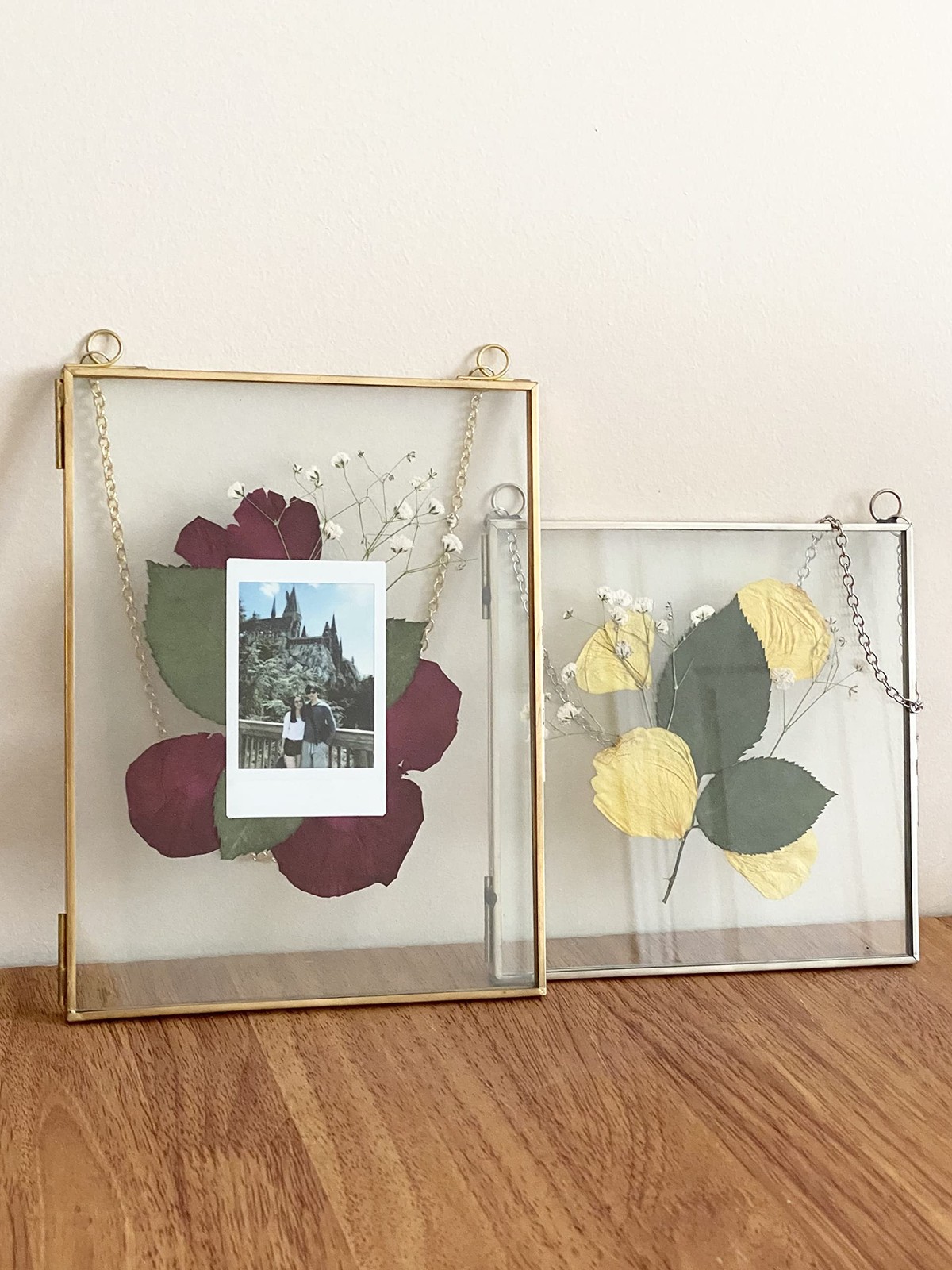 Glass Frame for Pressed Flowers, Leaf and Artwork - Hanging Square Metal Pict...