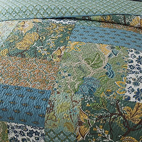 Cotton Patchwork Bedspread, 3-Piece Bedding Quilt Twin Green Farmhouse Garden