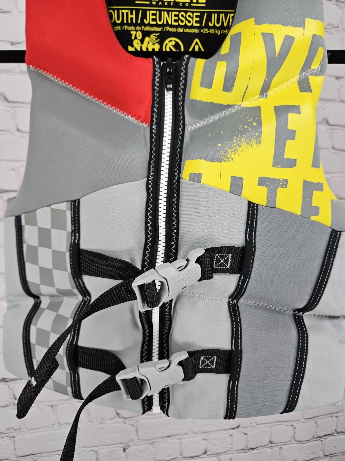 Hyperlite Wake Co Grey USCG Approved Front Zip Life Jacket Vest Youth 55-88lbs