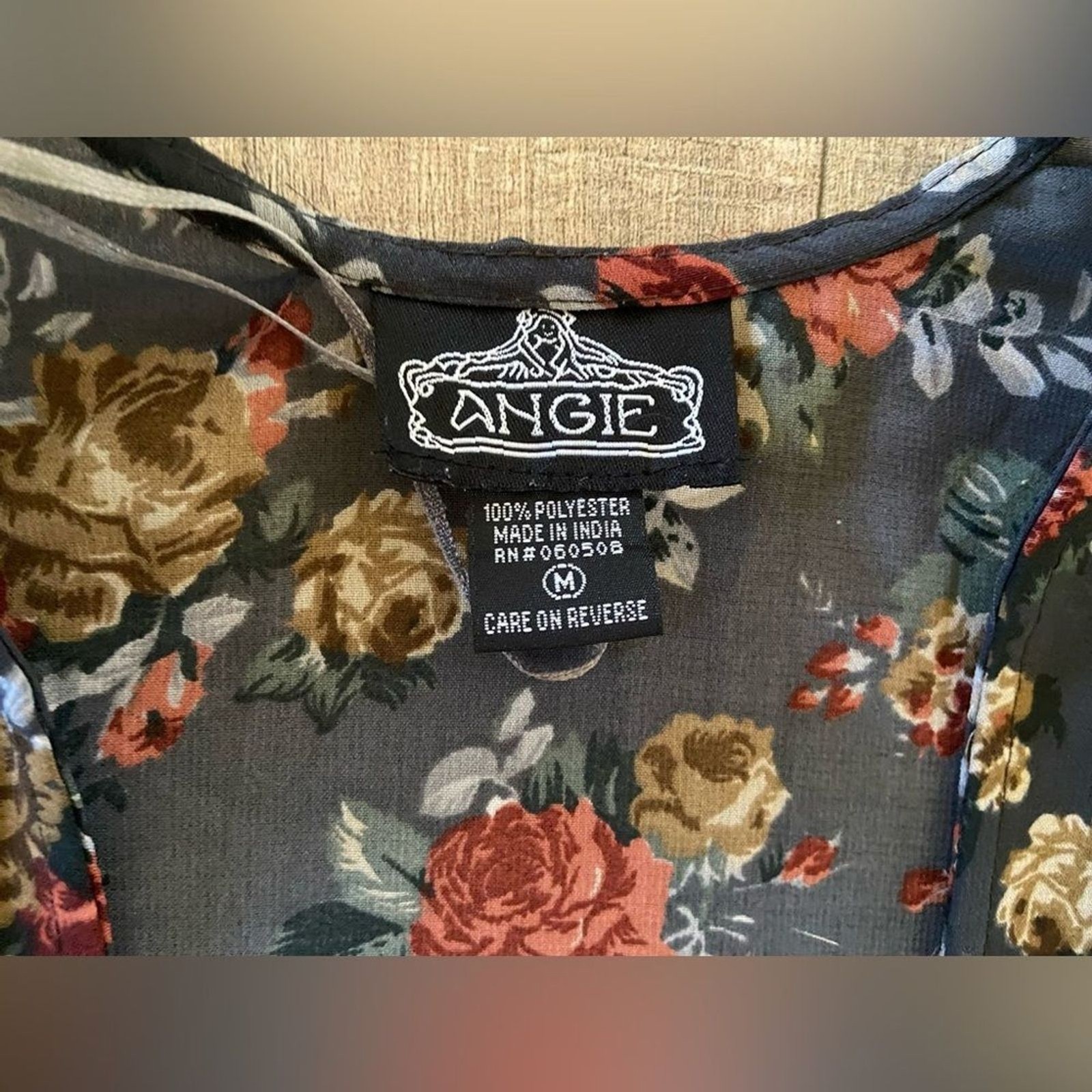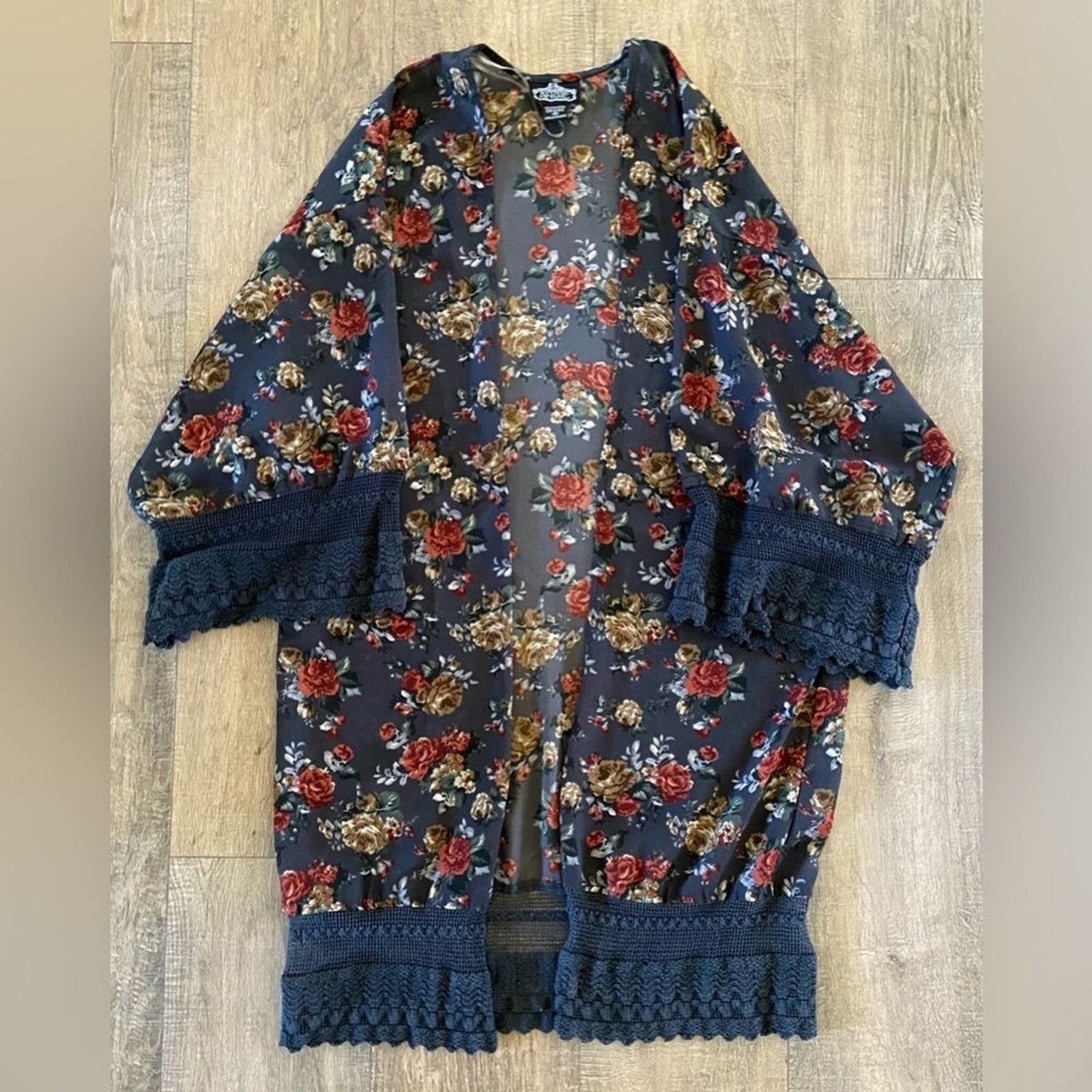 как выглядит Angie women s size medium dark grey and rust floral 3/4 length sleeve kimono фото