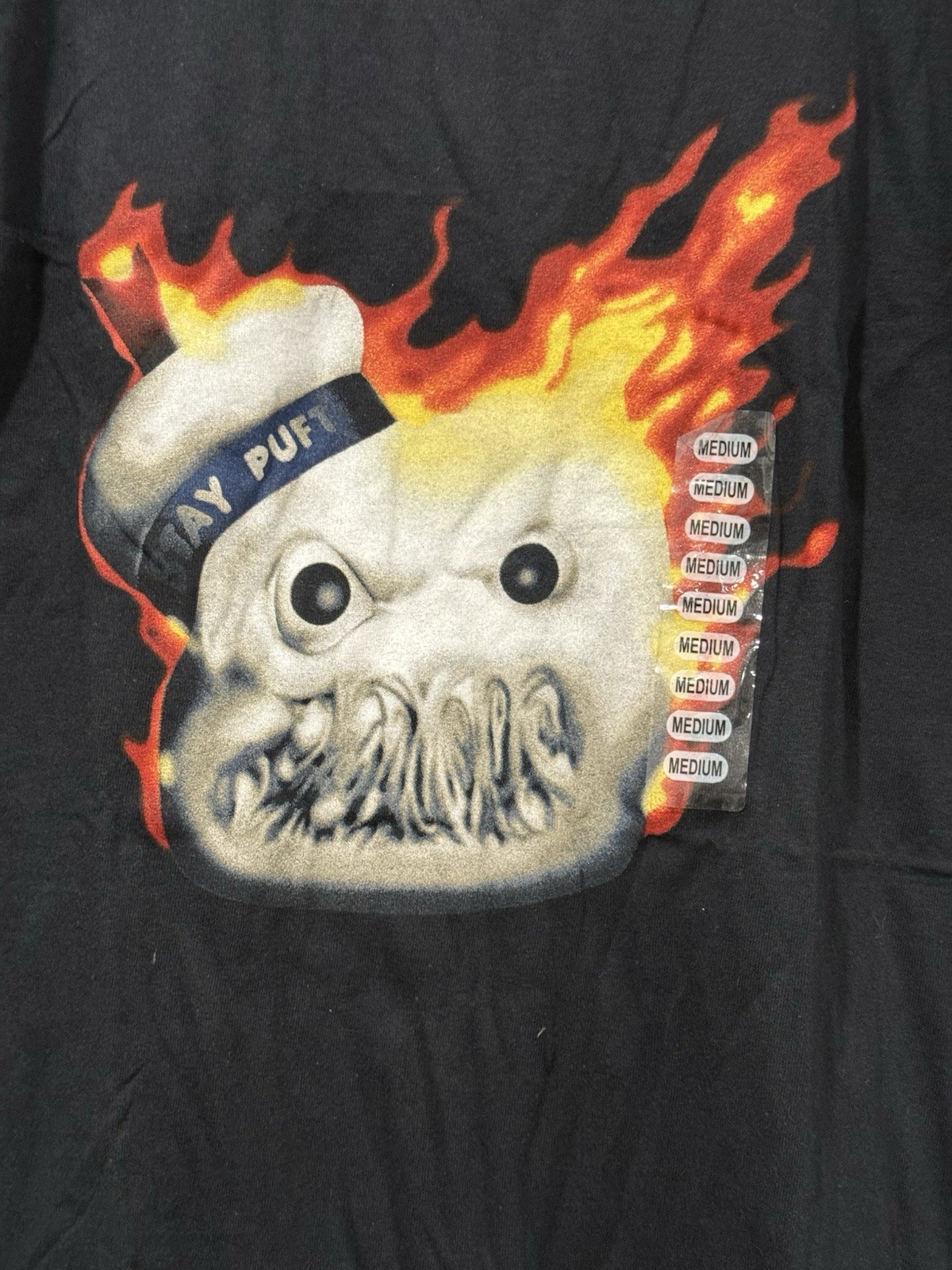 как выглядит Black Ghostbusters Flaming Stay Puft Marshmallow Man On Fire Shirt Medium M фото