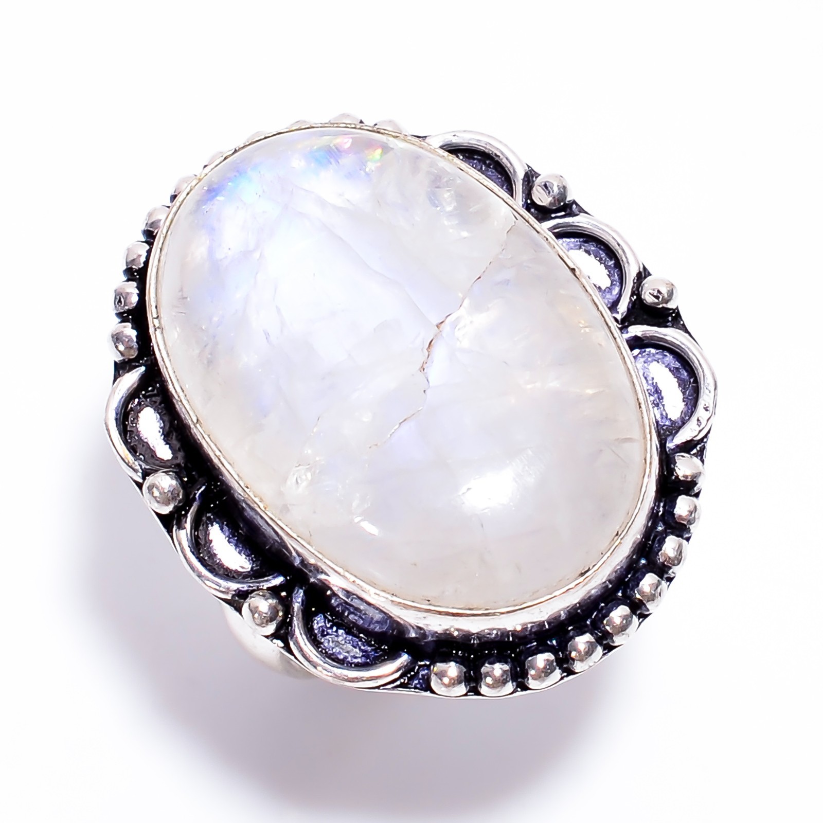 925 Sterling Silver Jewelry Natural Rainbow Moonstone Gemstone Elegant Ring 8 US