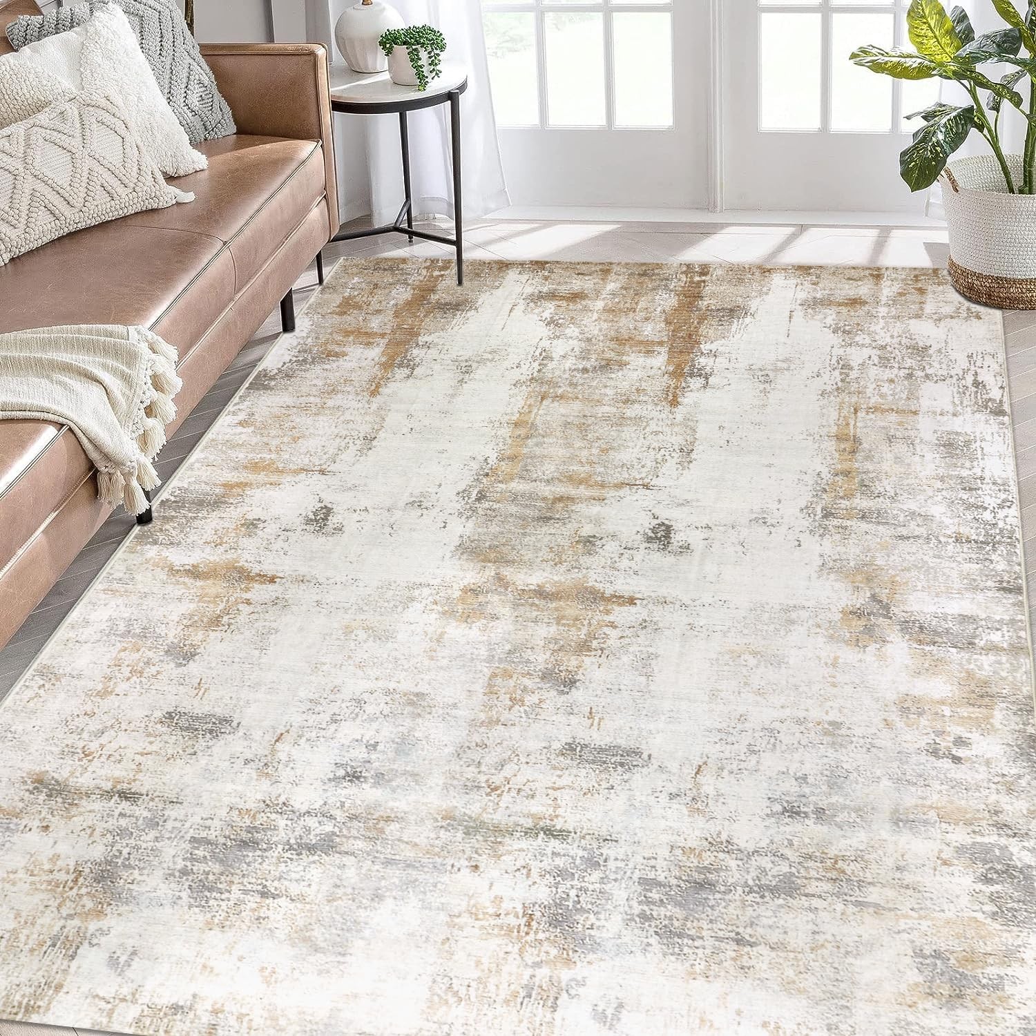 Washable Area Rug 6x9 Modern Living Room Rugs Low Pile Neutral Area Rug for B...