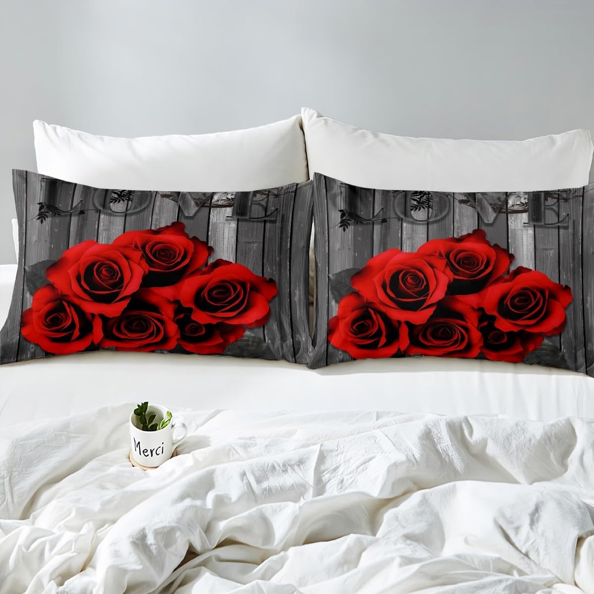 Red Rose Bedding Set King Red Black Valentine's Day Comforter Cover for Girls...