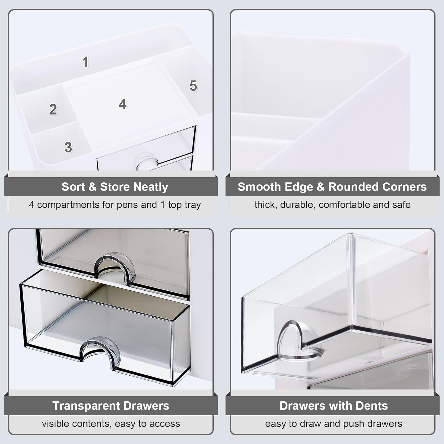 Plastic Pen Organizer, Multifunctional Desk Organizer with 2 Drawers, 4 Compartm