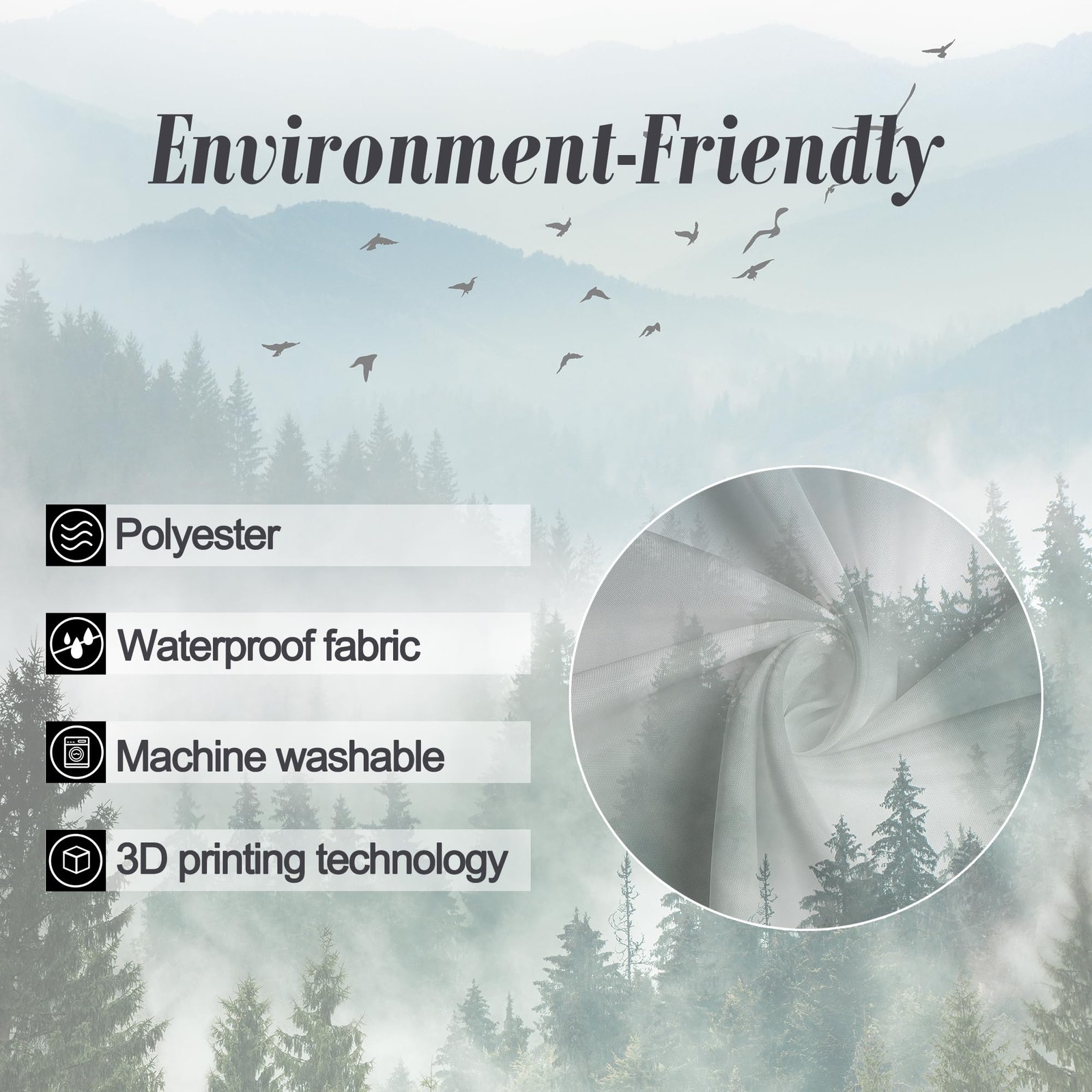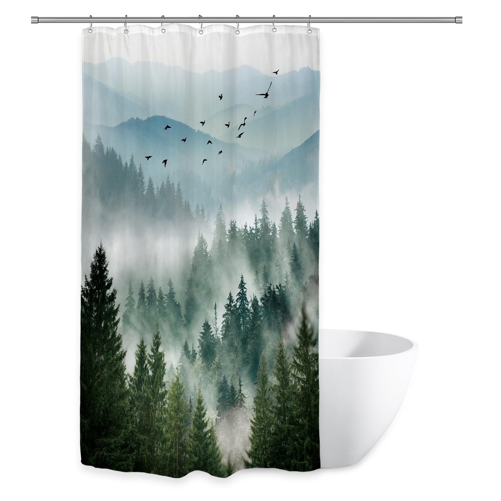 как выглядит Riyidecor Small Stall Mountain Shower Curtain 36Wx72H Inch Green Rv Single Rusti фото