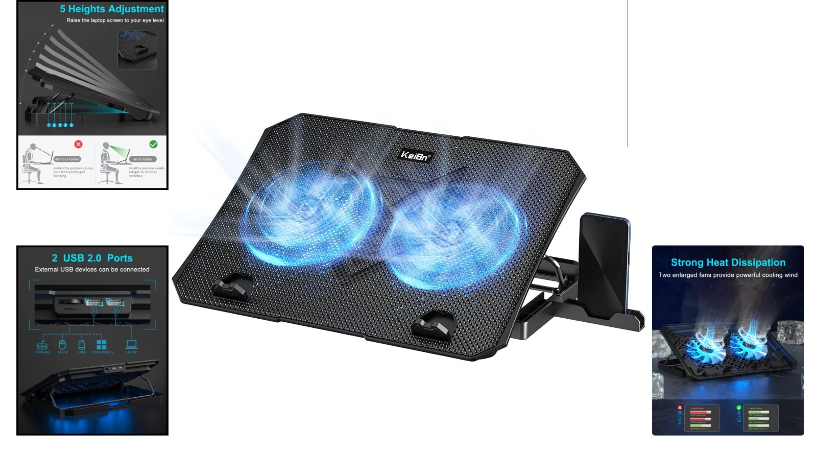 как выглядит Laptop Cooling Pad with 2 Fans, Adjustable Stand USB Ports - For 10-15.6 La... фото