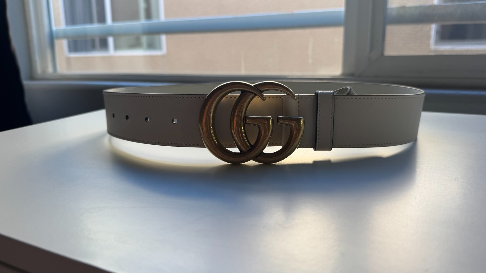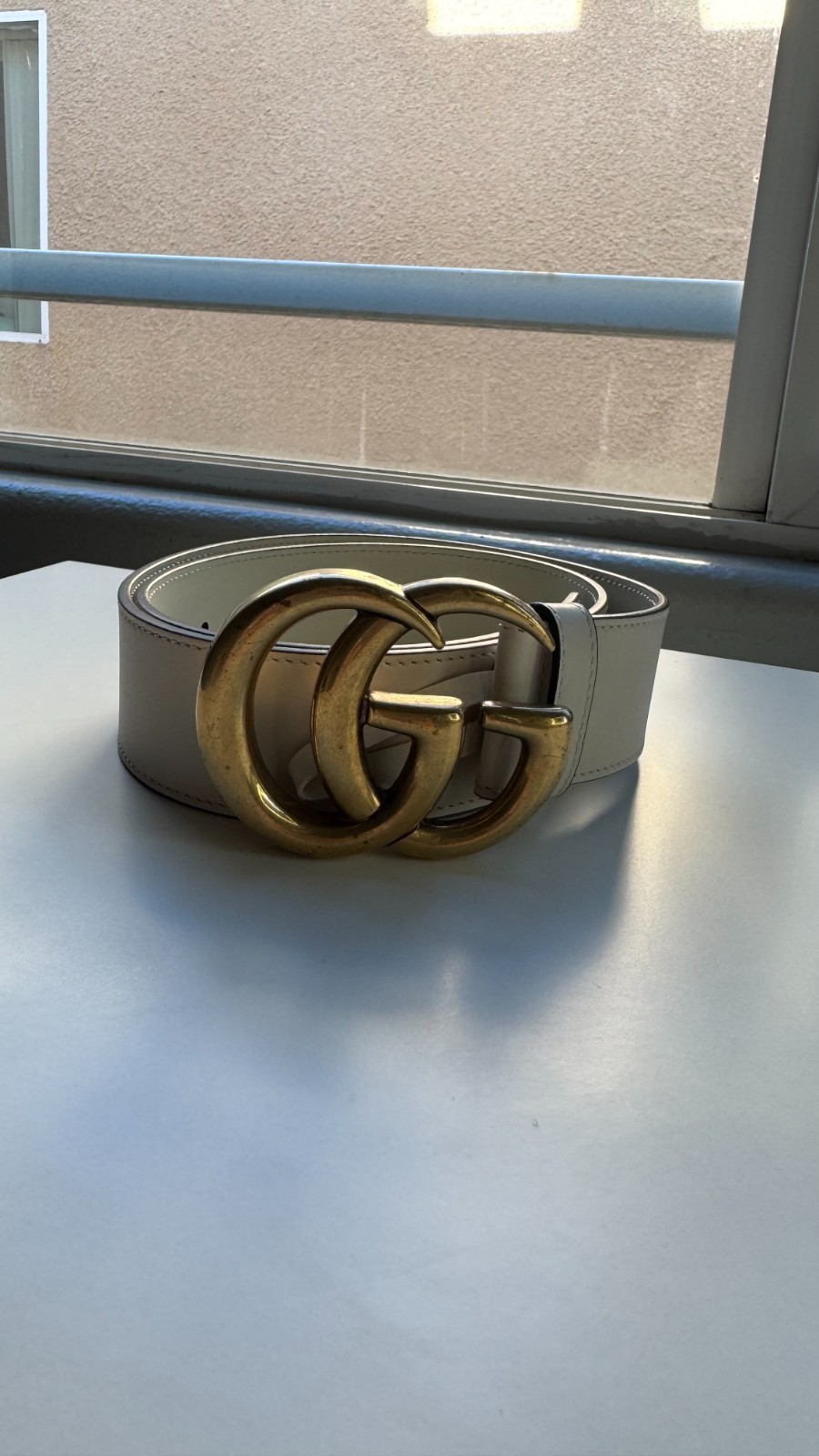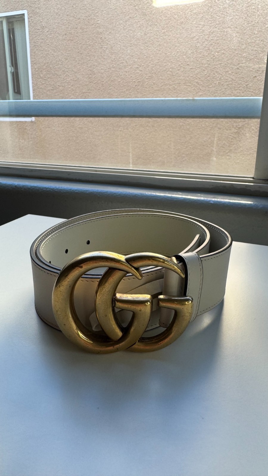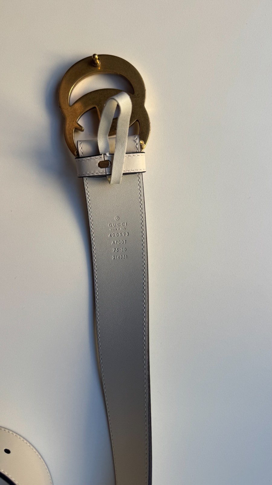 как выглядит Gucci GG Marmont wide belt white size 75, excellent condition фото