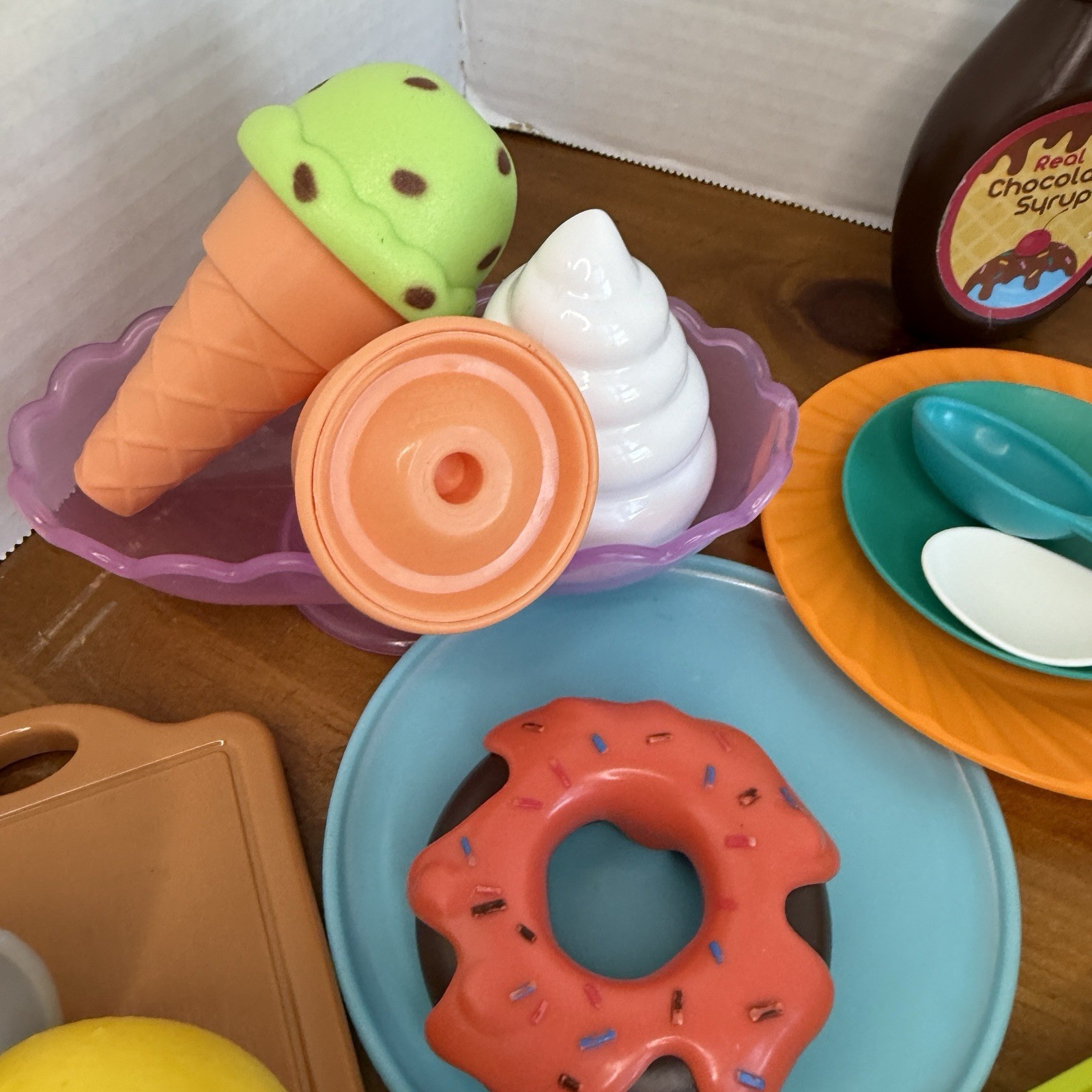 Lot Pretend Play Kitchen Food Ice Cream Shop, Donut, Syrup Plastic 19 pcs