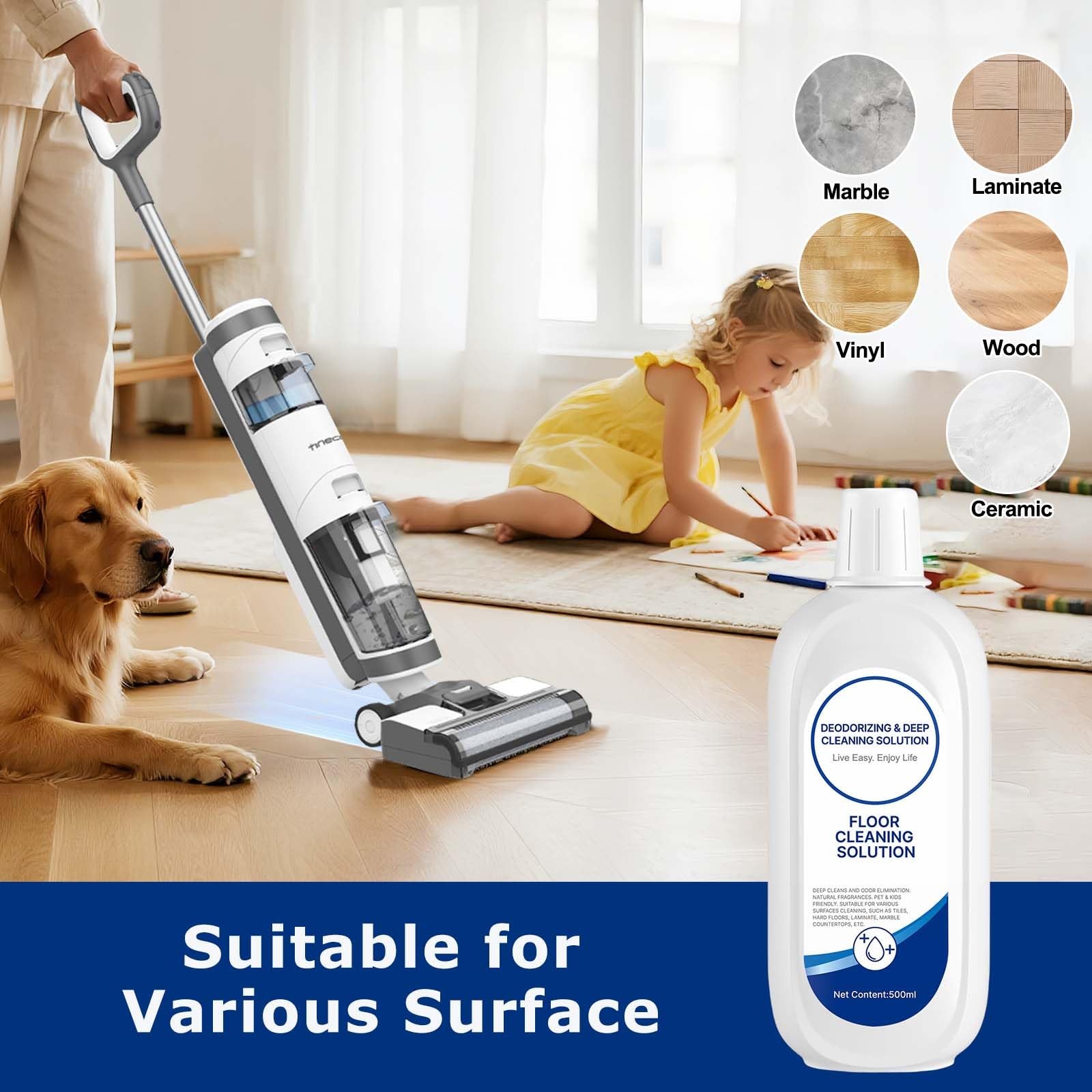 Surface Recommendation: Ceramic, Floor, Tile, Wood, Vinyl, Marble, Stone, Laminate
