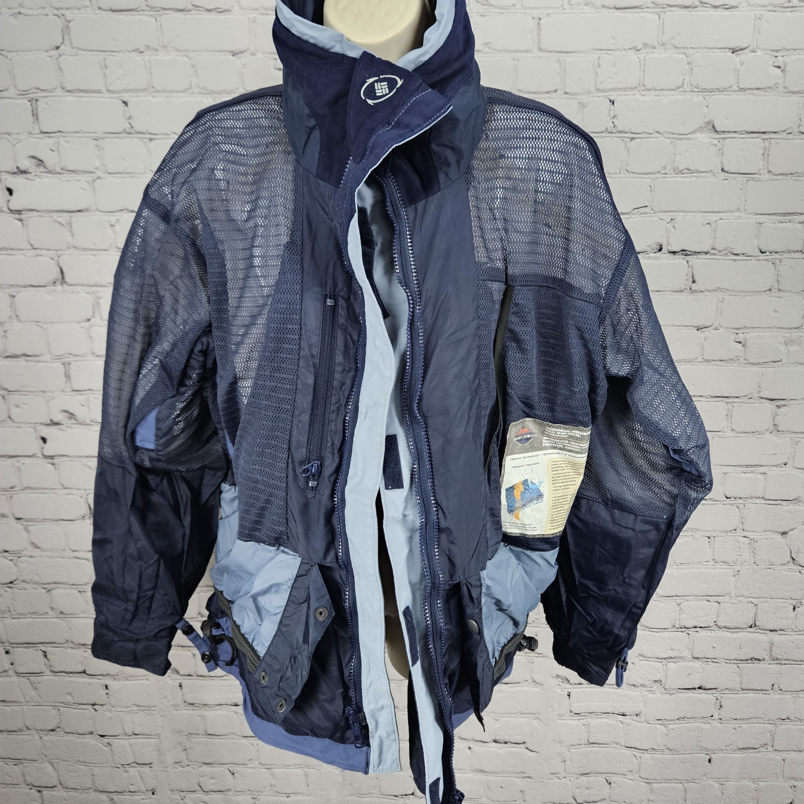 как выглядит Columbia Blue Titanium Omni Tech Waterproof Breathable Double Zip Jacket Medium фото