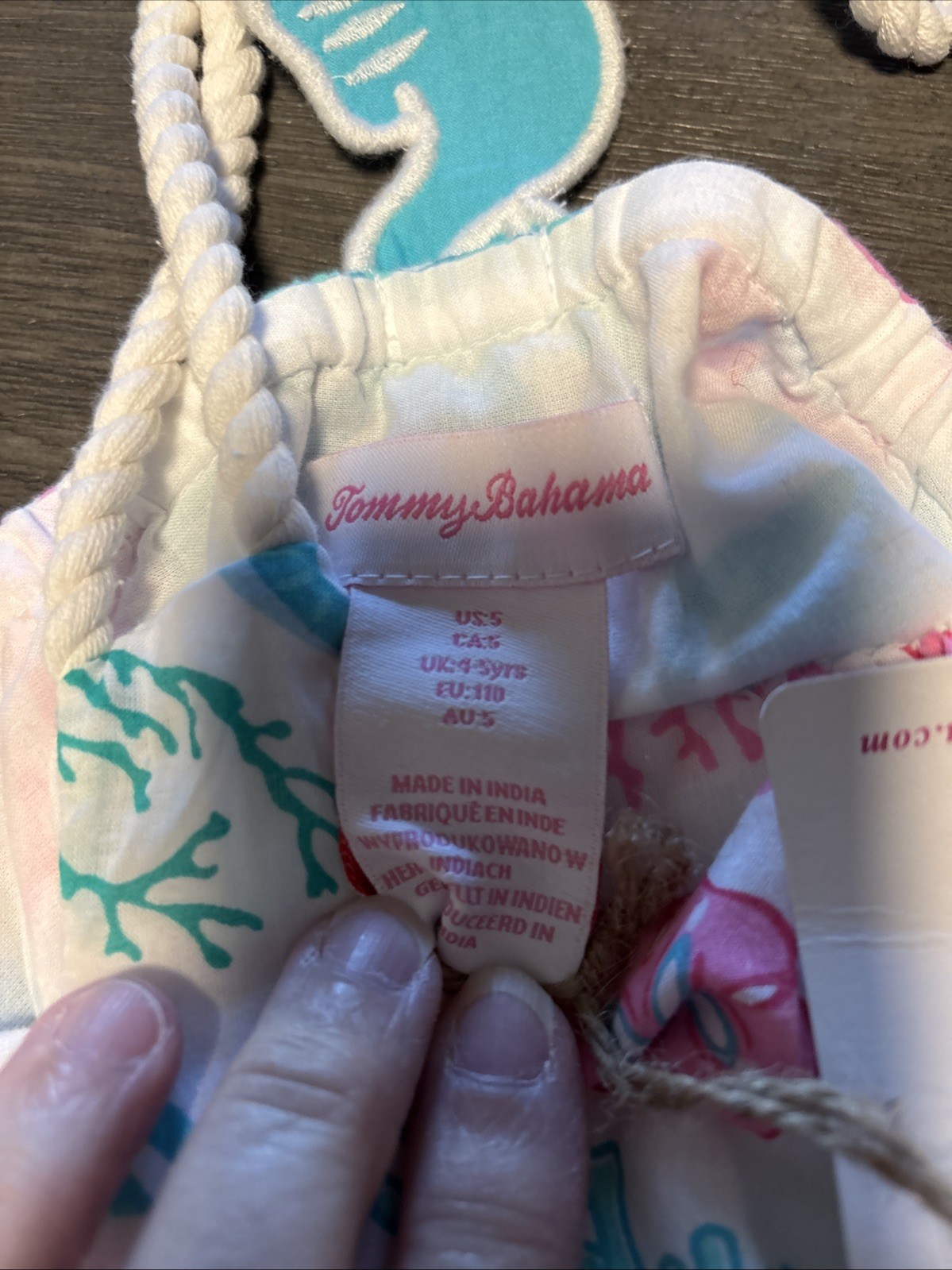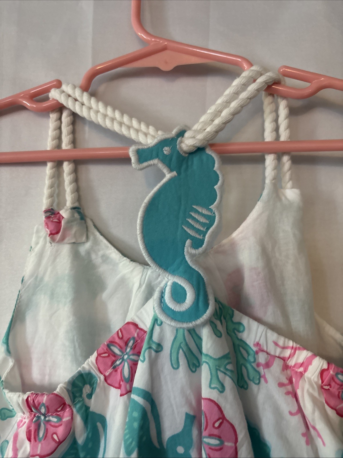 как выглядит Tommy Bahama Kids Teal Pink Seahorse Dress Lined Girls Size 5 NWT фото
