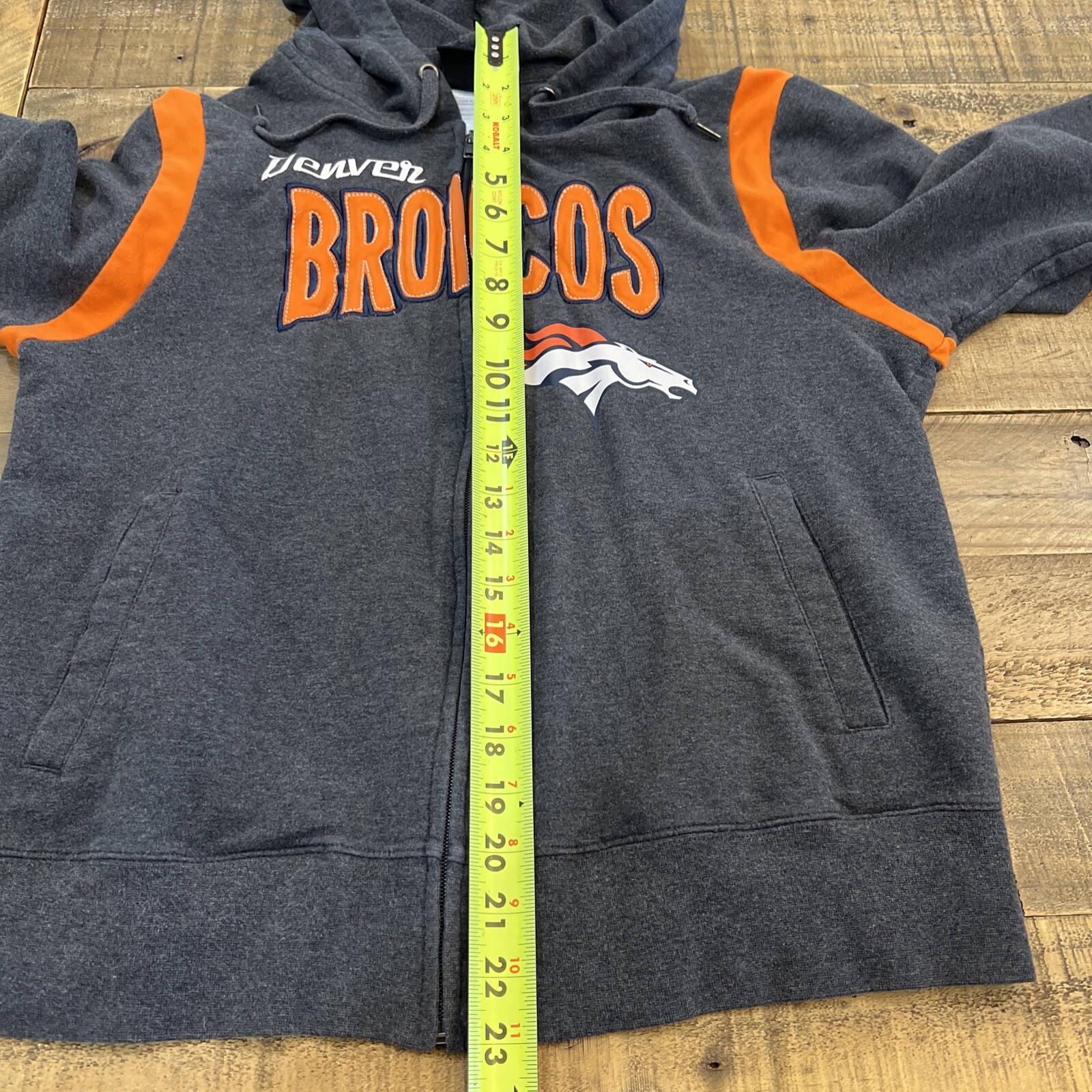 NFL Team Apparel Denver Broncos Women's Lightweight Hoodie Zip Up Size L Gray