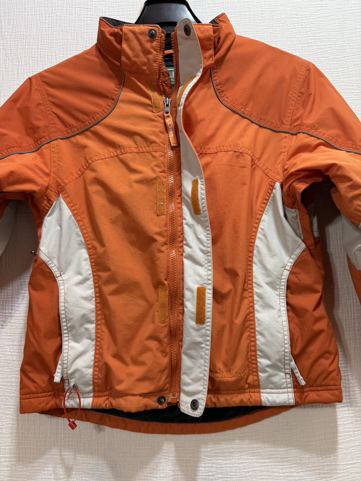 как выглядит L.L. Bean Hoodie Jacket Kids Size 10/12 Orange Insulated Zip-Up Ski Winter фото