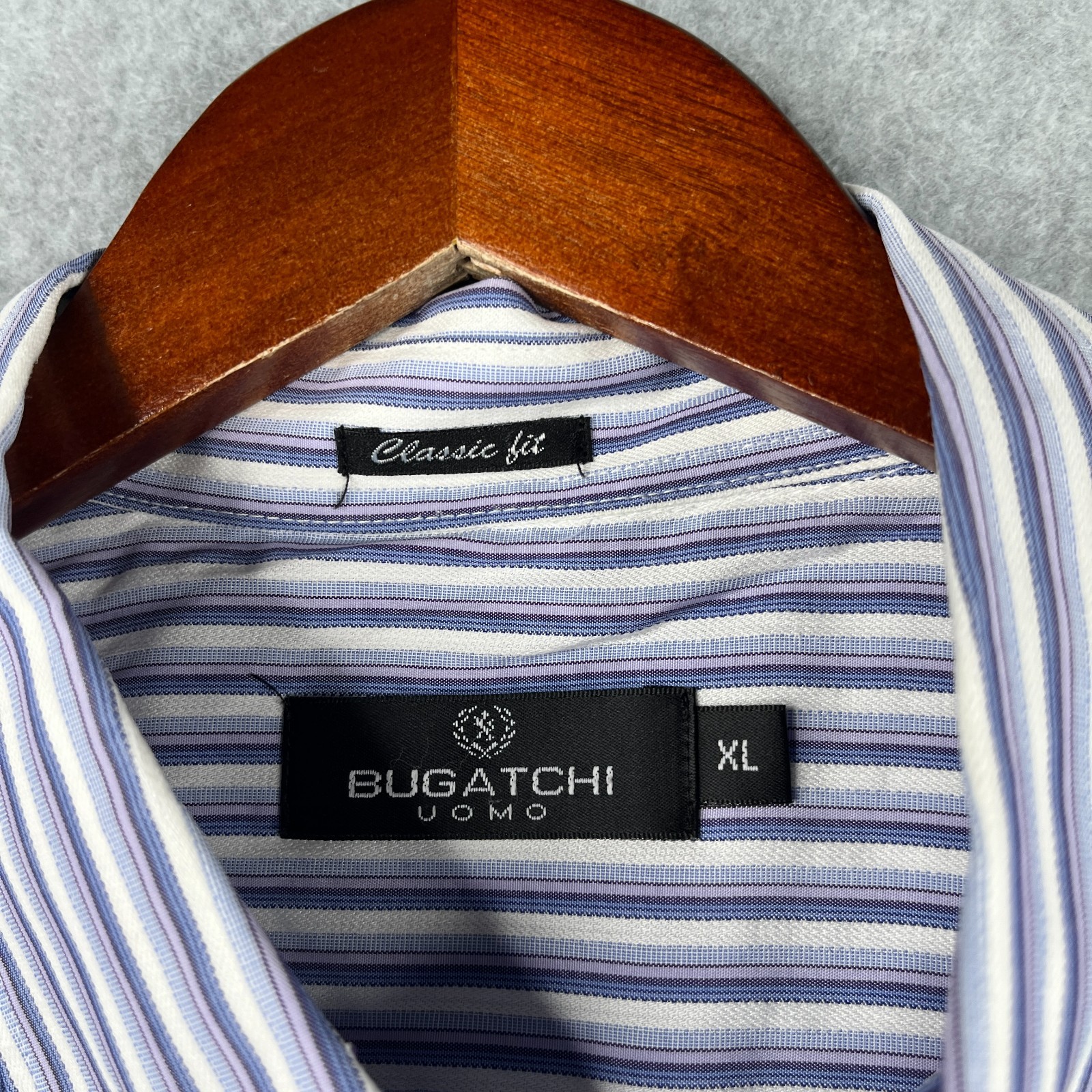 как выглядит BUGATCHI UOMO Classic Fit Shirt XL Blue Purple Striped Button Up Short Sleeve фото