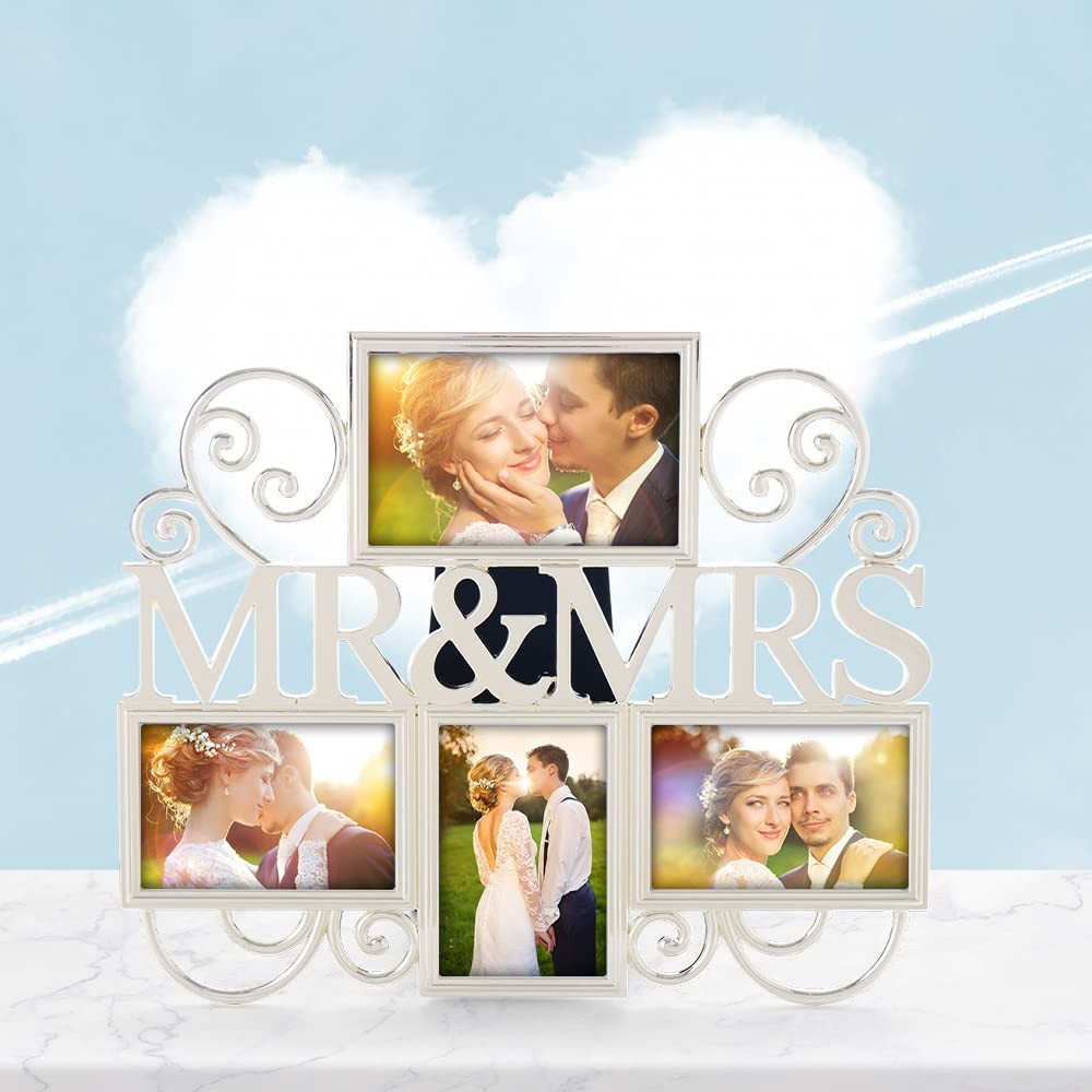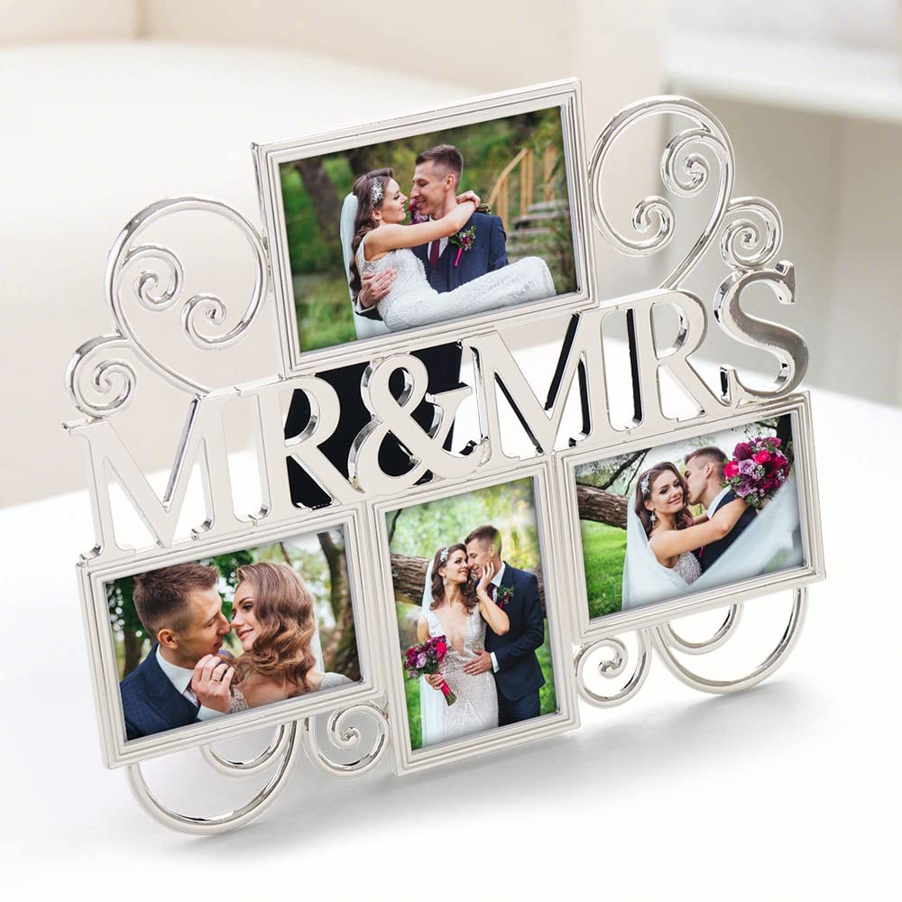 Mr Mrs Picture Frames,Cherish Every Memory,4 opening photo collage,Silver P...