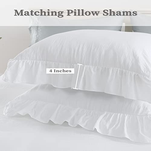 Ruffle Duvet Cover Queen Size, 3PCS Soft Washed Queen 90x90 White