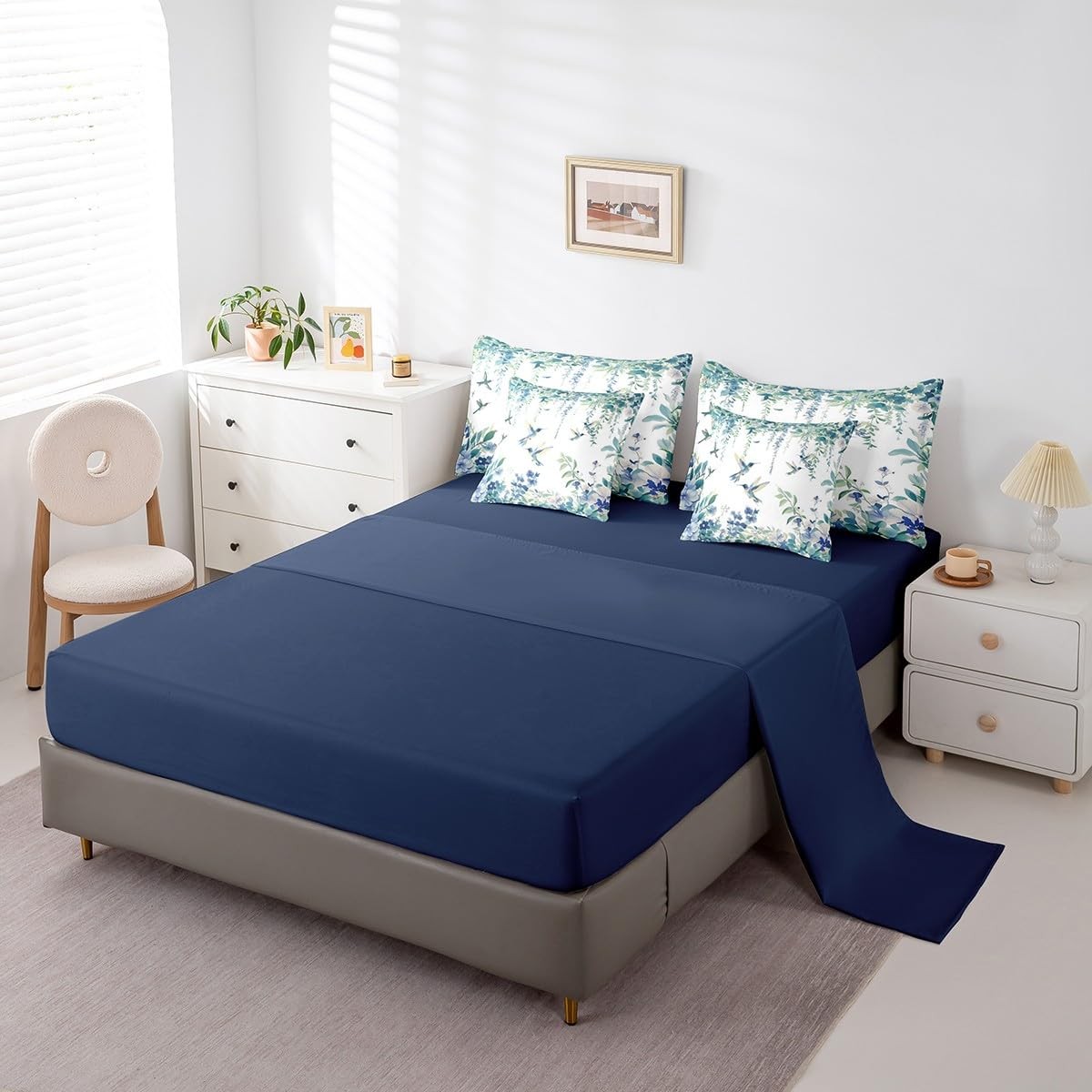 Birds Vine Queen Comforter Set 7-Piece, Boho Leaves Petals Bedding Accessorie...