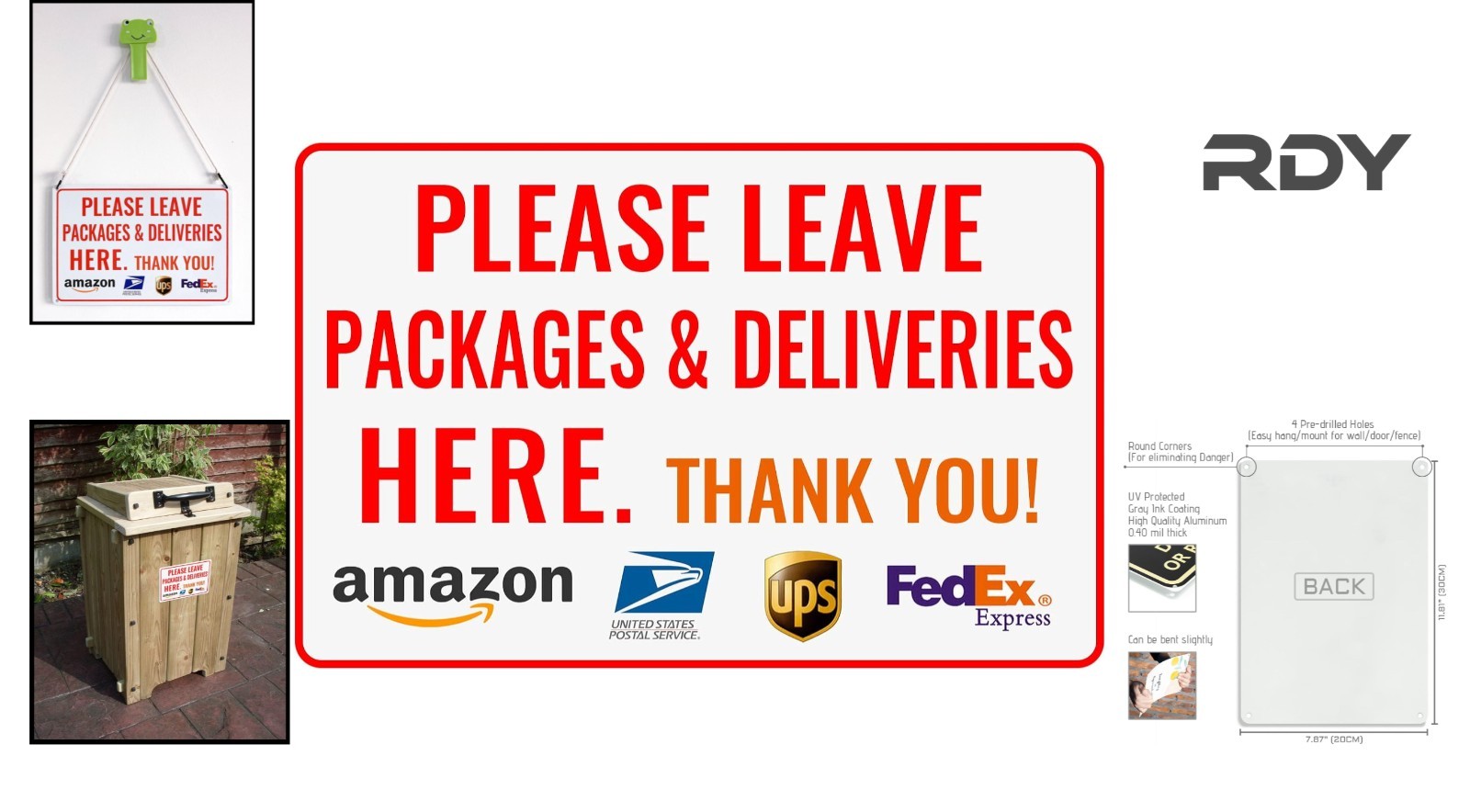 Durable 12x8 Aluminum Delivery Sign for Outdoor Use - Protect Your Packages