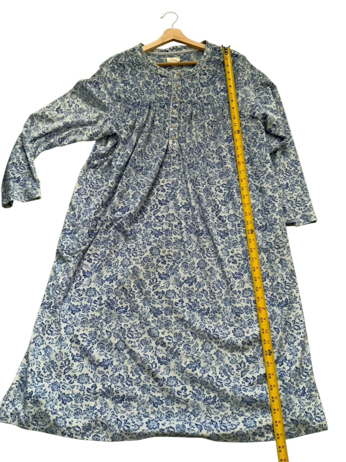ARIA Long Sleeve KNIT VELOUR BALLET Nightgown Women's size XL Blue White