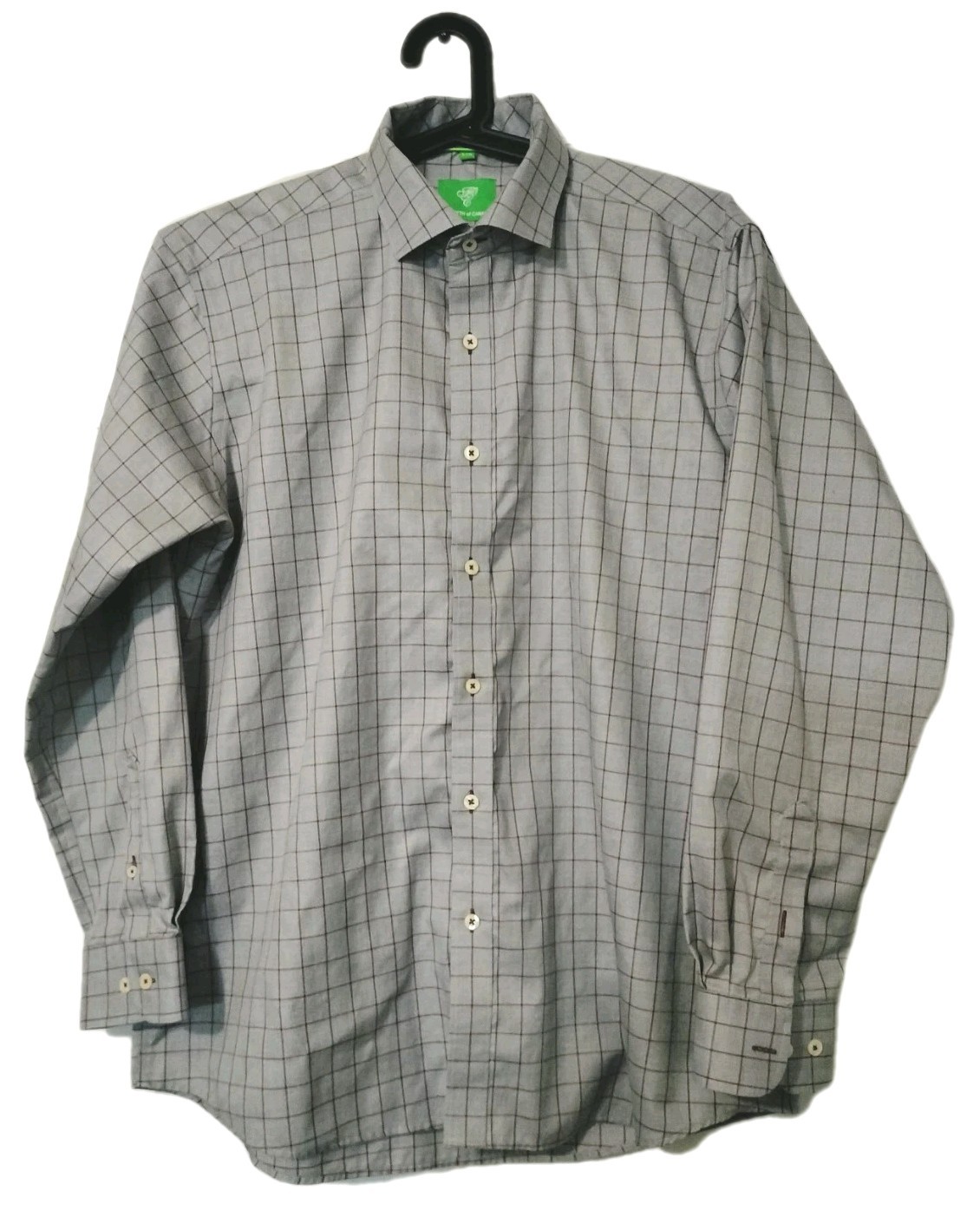 как выглядит Forsyth Of Canada Dress Shirt Mens L Gray Wine Windowpane Grid Wrinkle Free фото